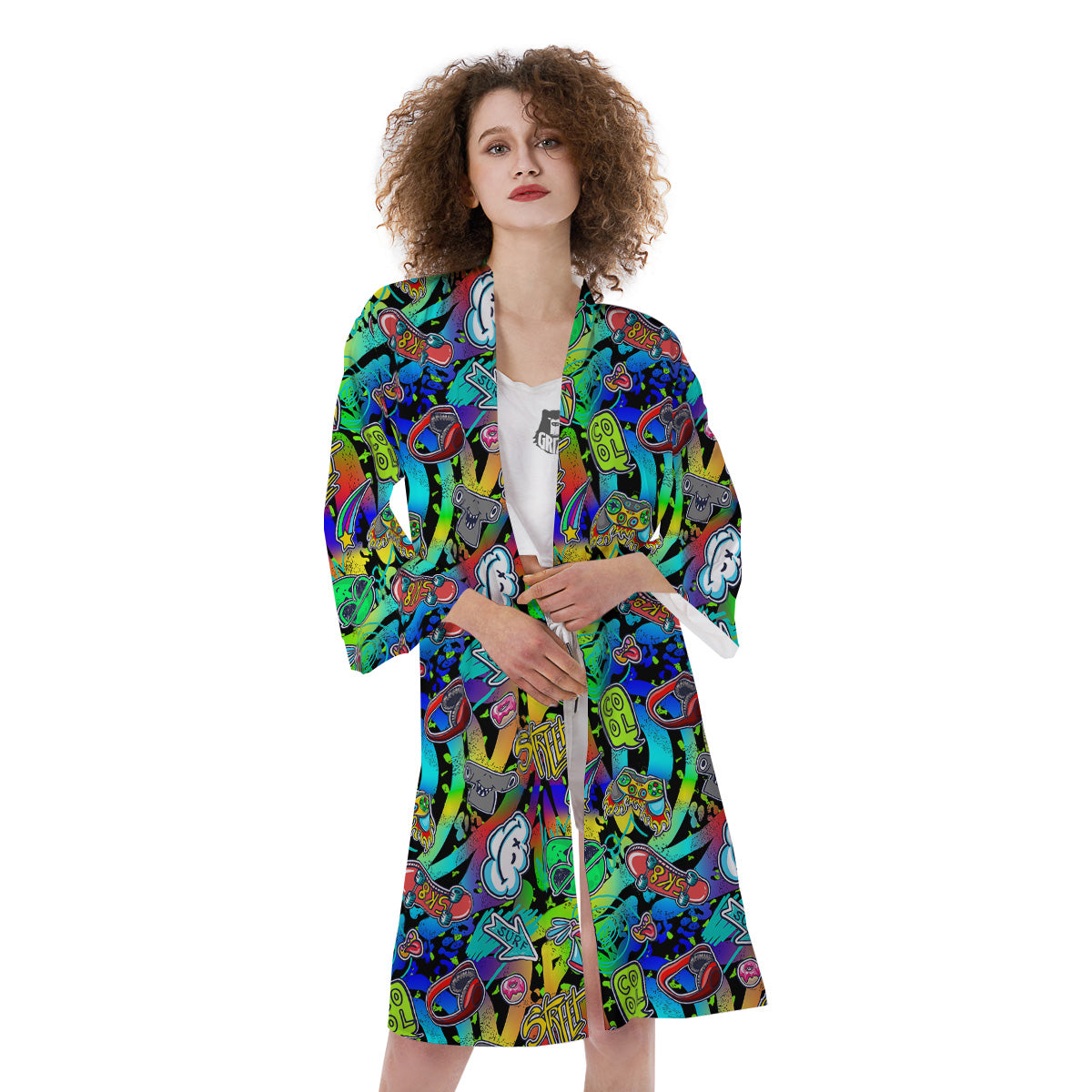 Abstract Alien Graffiti Text Print Pattern Kimono
