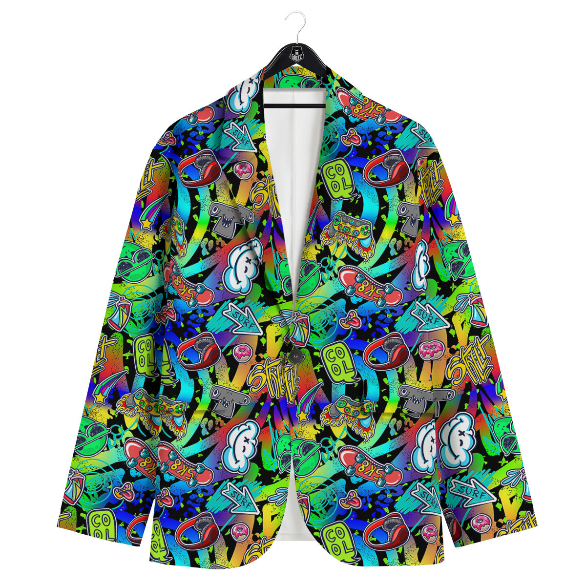 Abstract Alien Graffiti Text Print Pattern Men's Sport Coat