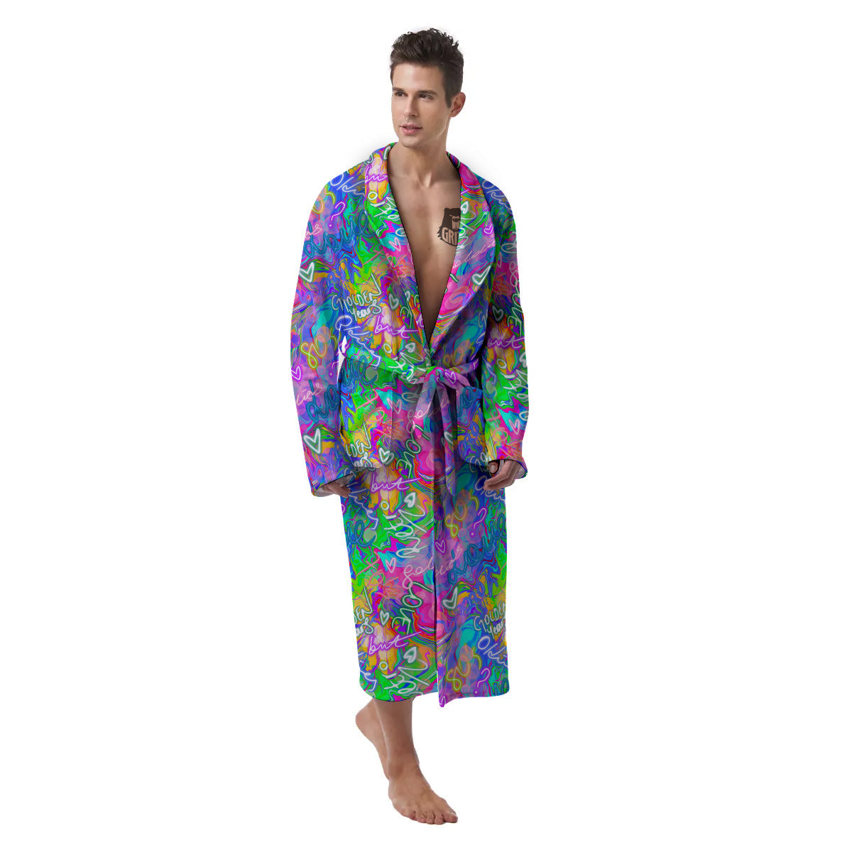Abstract Graffiti Hand Drawing Neon Retro Print Pattern Men's Robe
