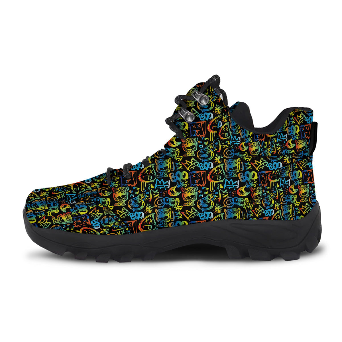 Abstract Graffiti Neon Monsters Print Pattern Hiking Shoes