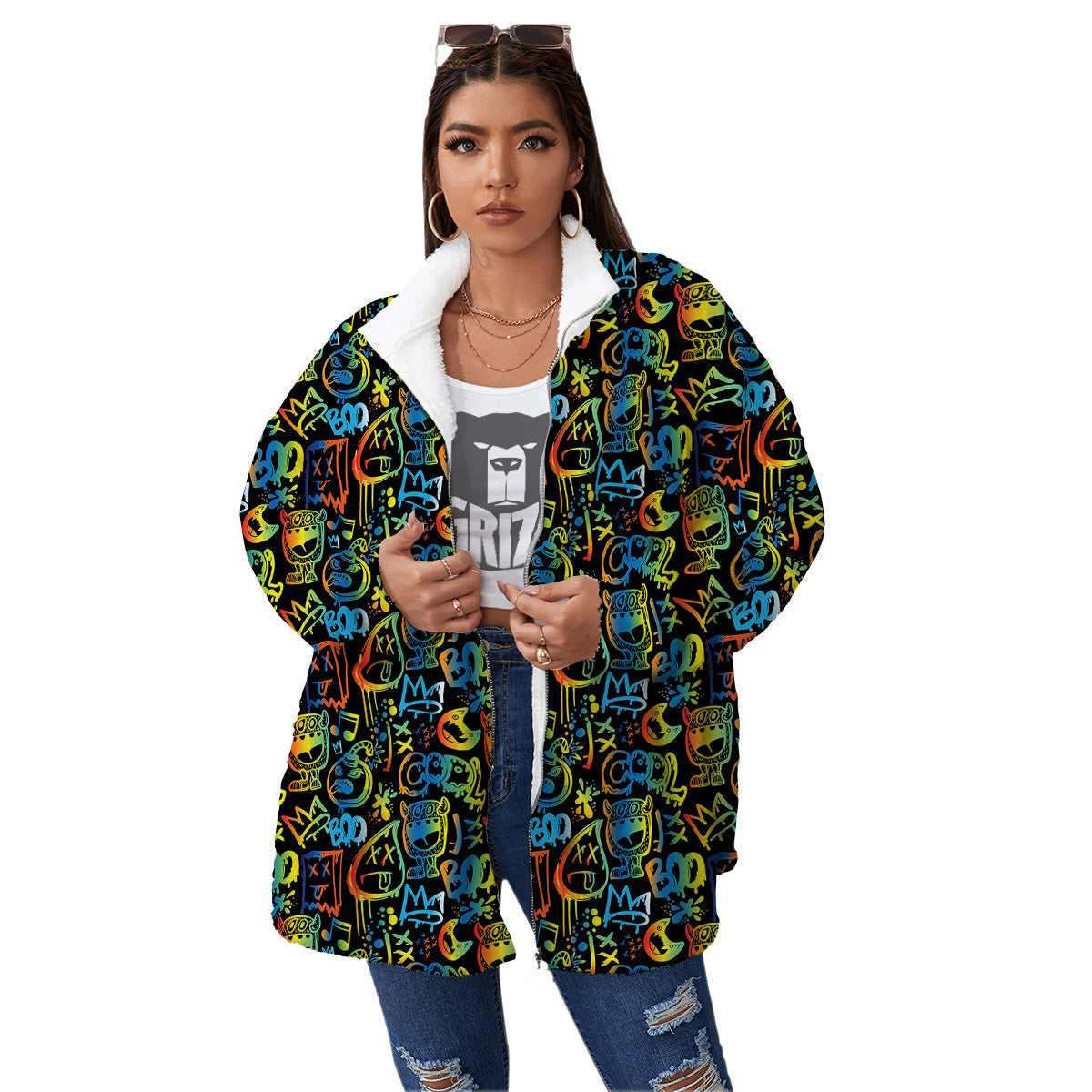 Abstract Graffiti Neon Monsters Print Pattern Women's Sherpa Jacket
