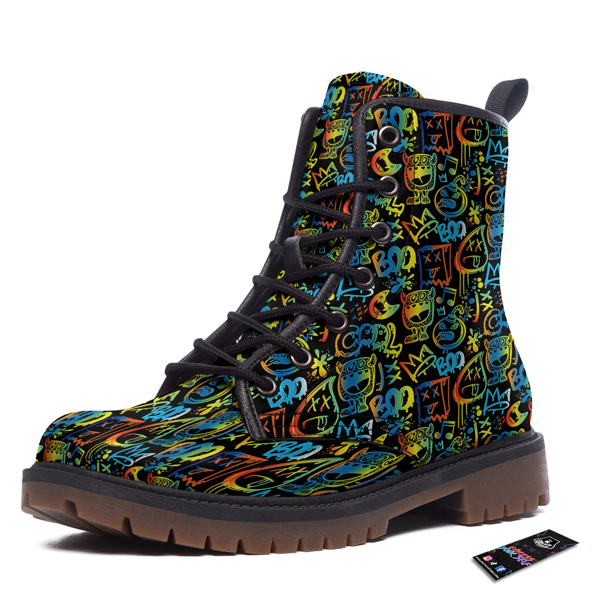 Abstract Graffiti Neon Monsters Print Pattern Work Boots