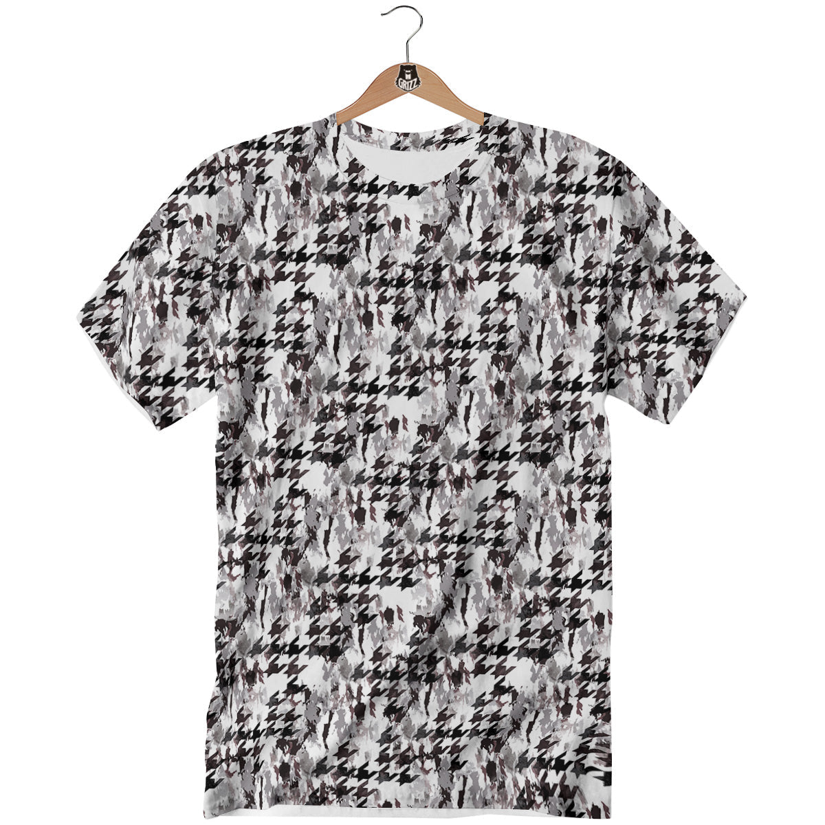 Abstract Houndstooth And Camo Print Pattern T-Shirt