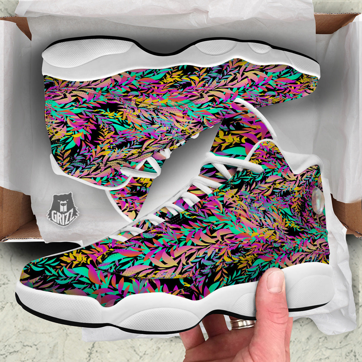 Abstract Leaf Neon Print Pattern White Basketball Shoes