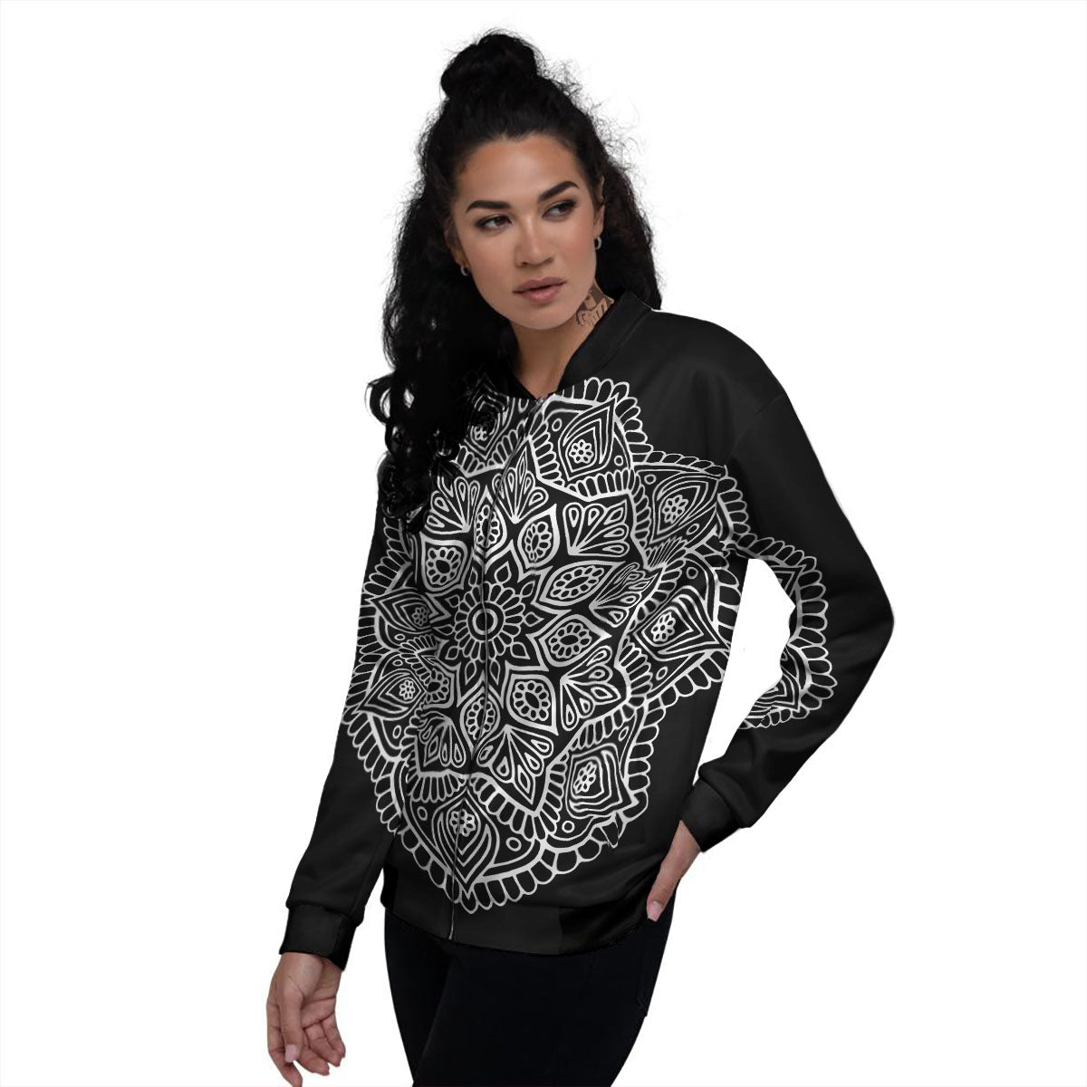 Looking for a unique bomber jacket? Check out our Abstract Mandala White And Black Print Women's Bomber Jacket at Grizzshopping. Our bomber jacket are handcrafted to the highest quality standards that custom made for you