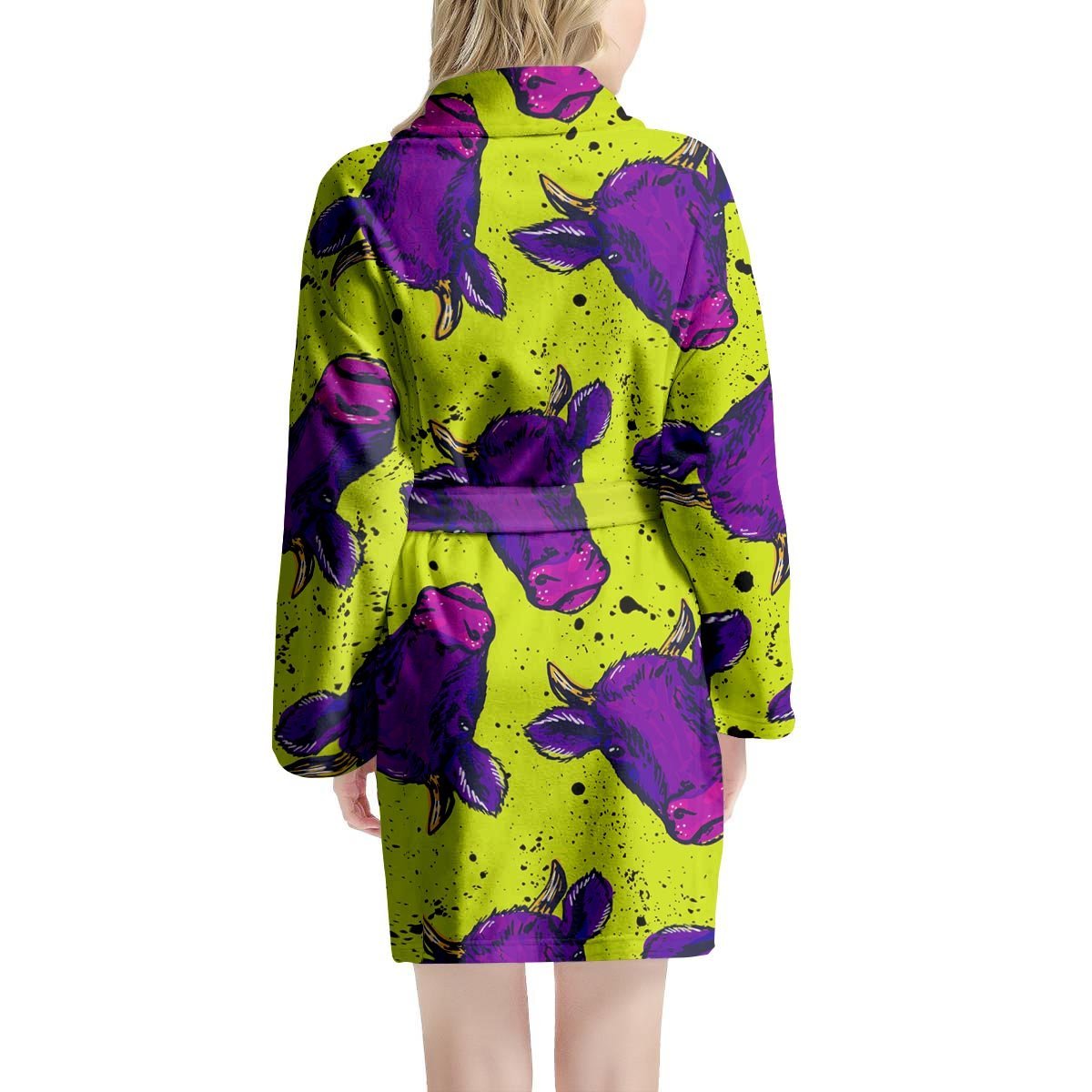 Abstract Neon Cow Print Women's Robe