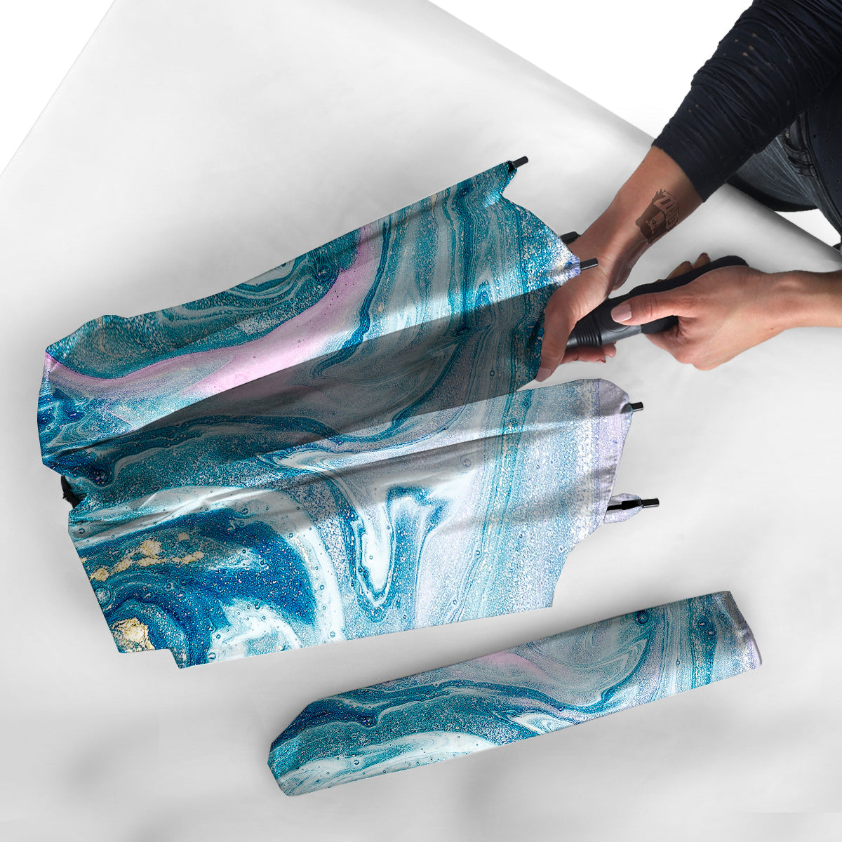 Abstract Ocean Marble Pink Blue Print Umbrella