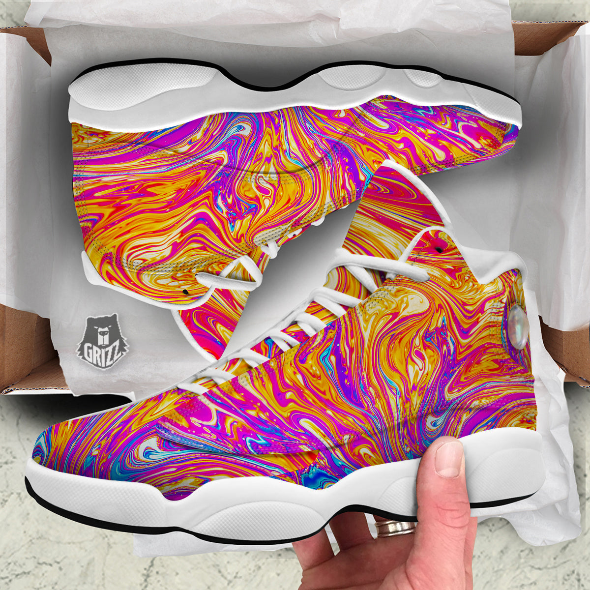 Abstract Orange Psychedelic Print White Basketball Shoes