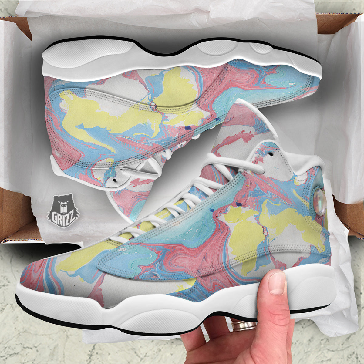 Abstract Pastel Texture Marble Print White Basketball Shoes