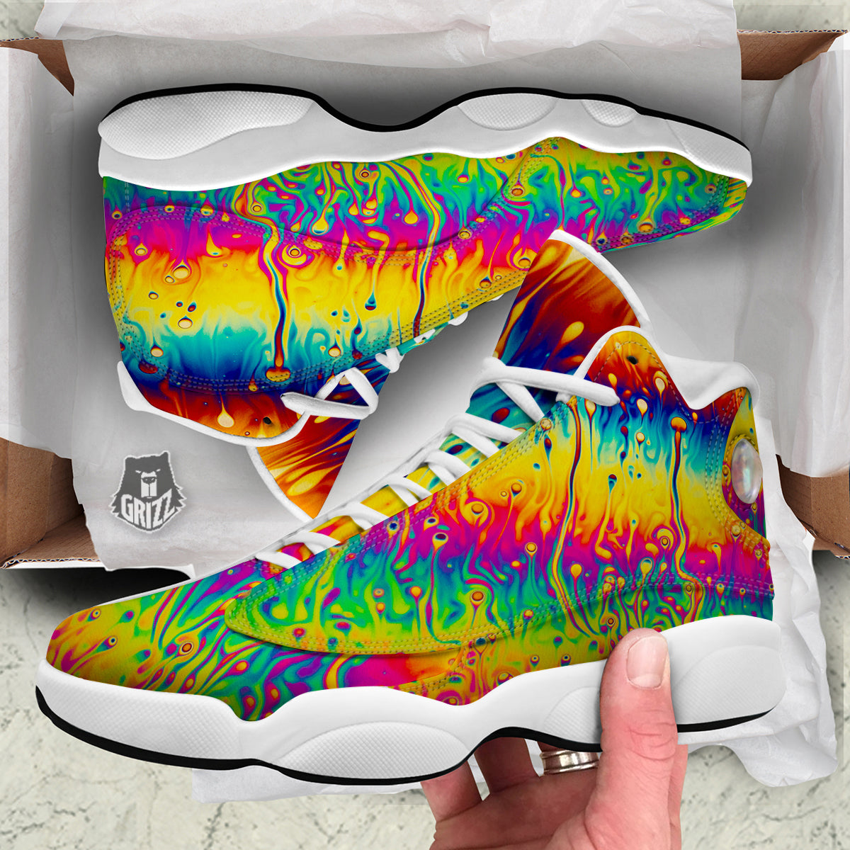 Abstract Psychedelic Rainbow Acid Print White Basketball Shoes