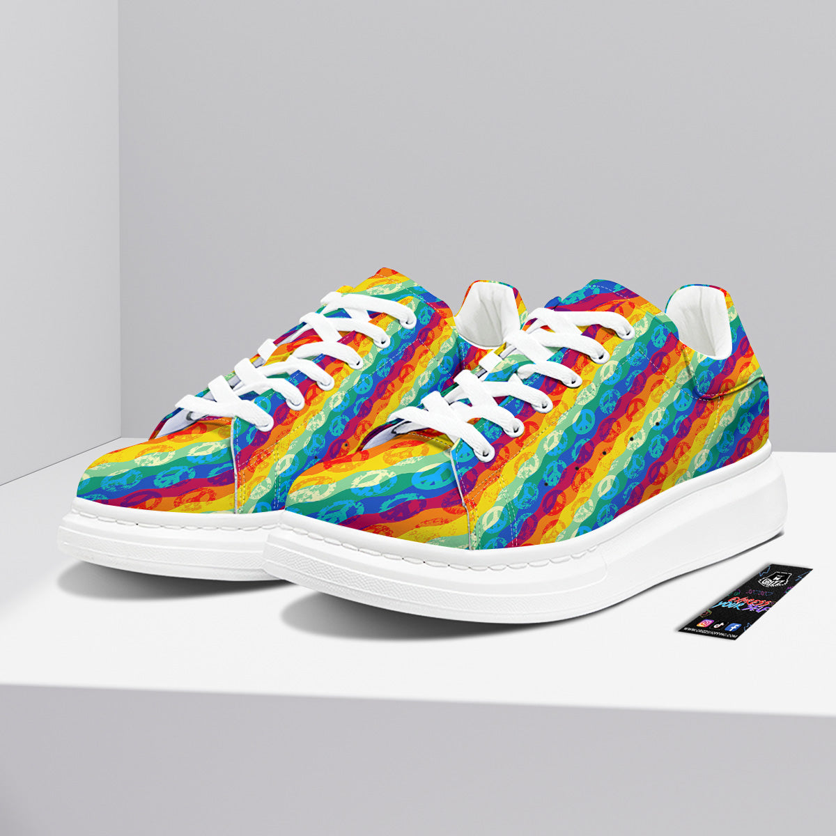 Abstract Rainbow Peace Signs And LGBT Print Pattern Platform Shoes