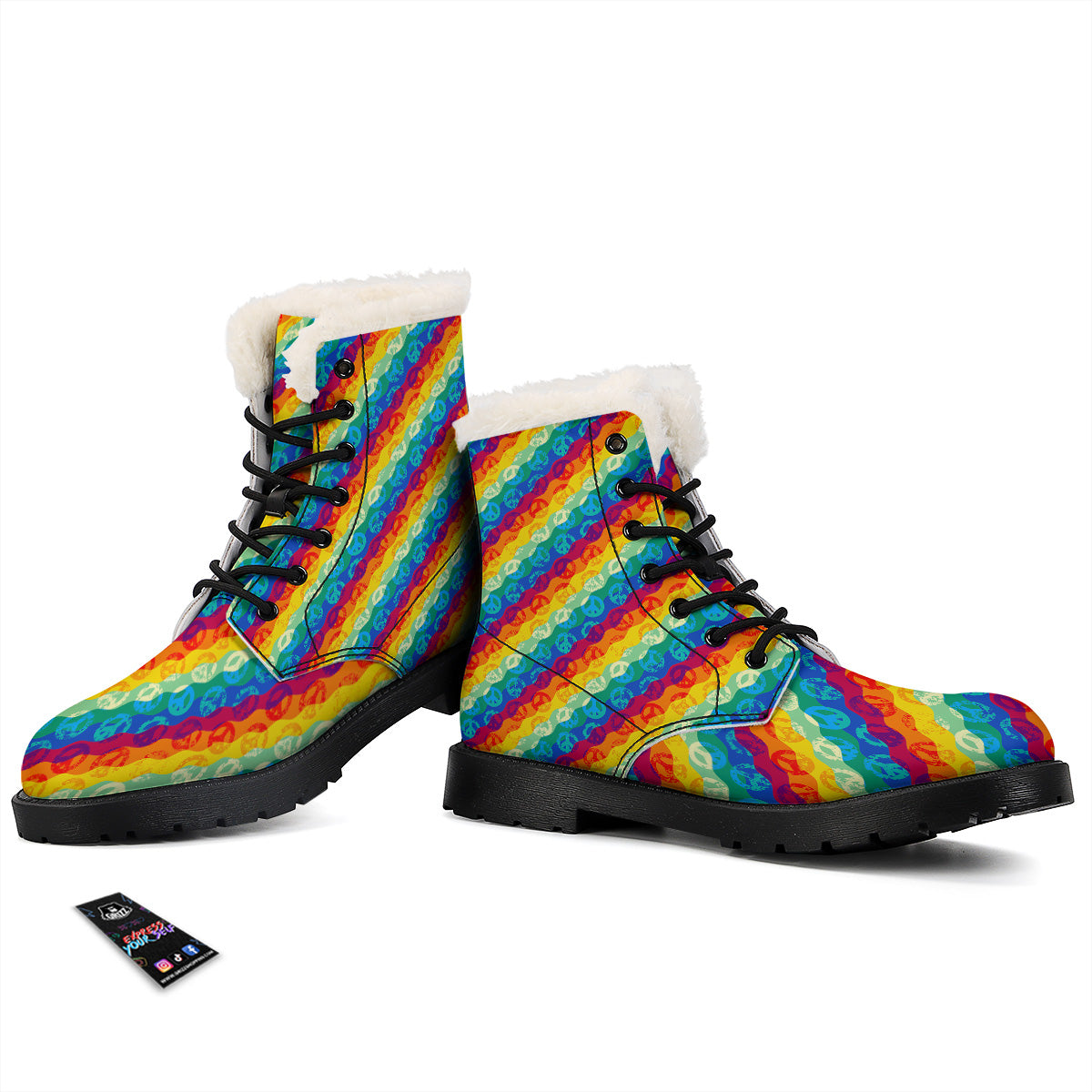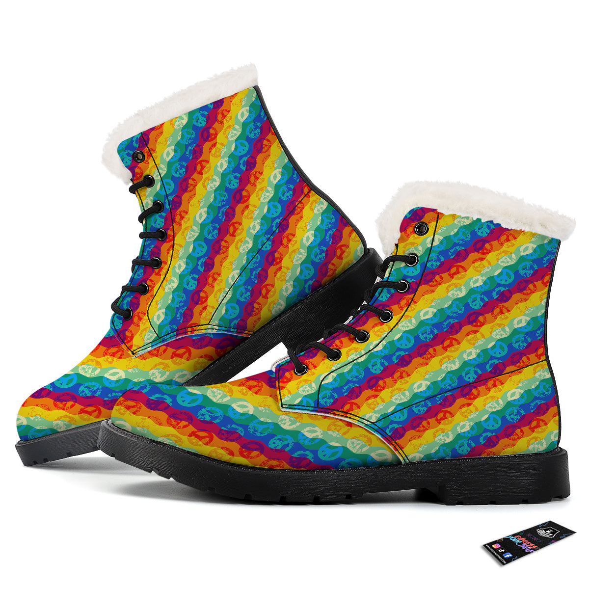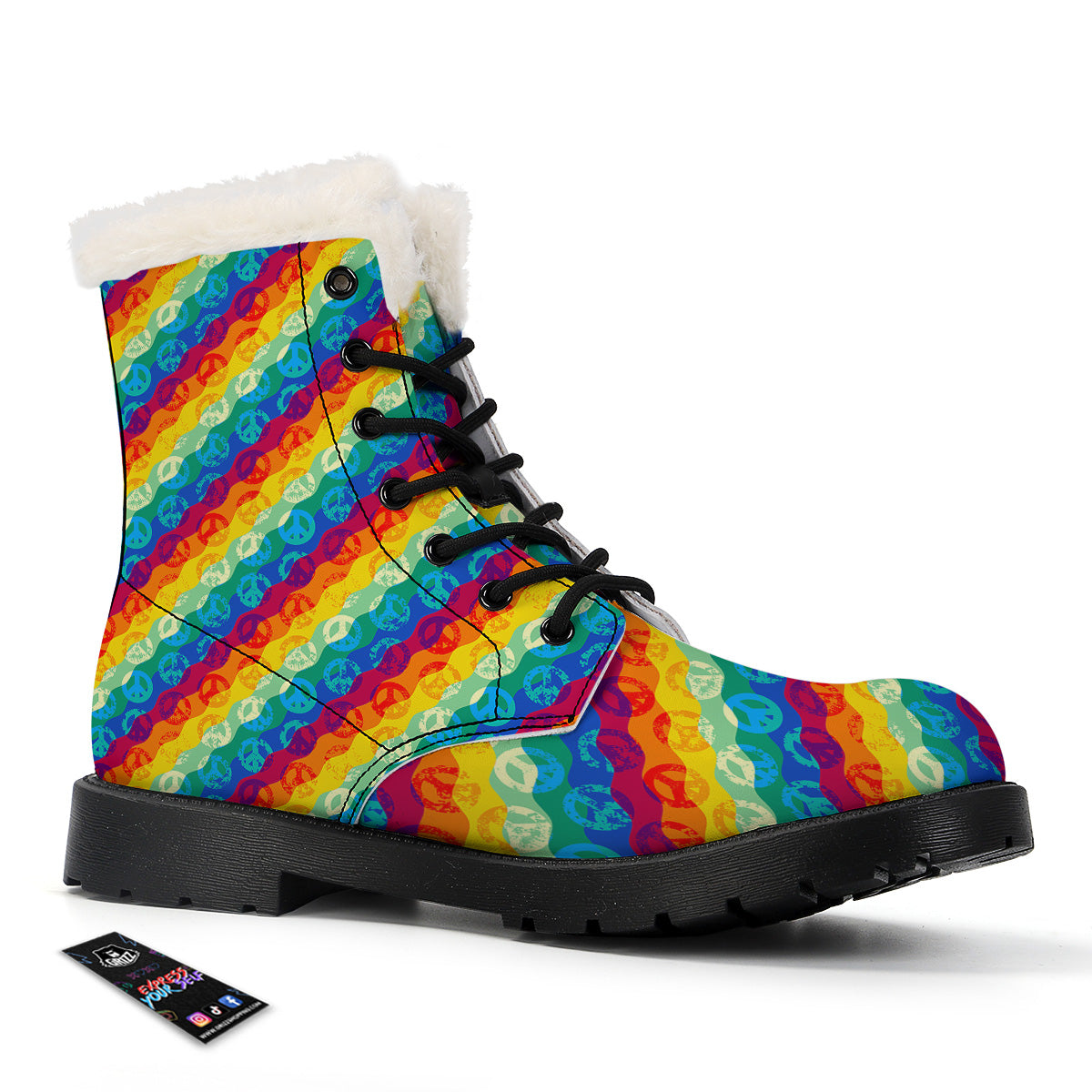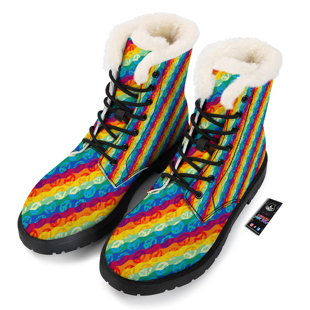 Abstract Rainbow Peace Signs And LGBT Print Pattern Winter Boots
