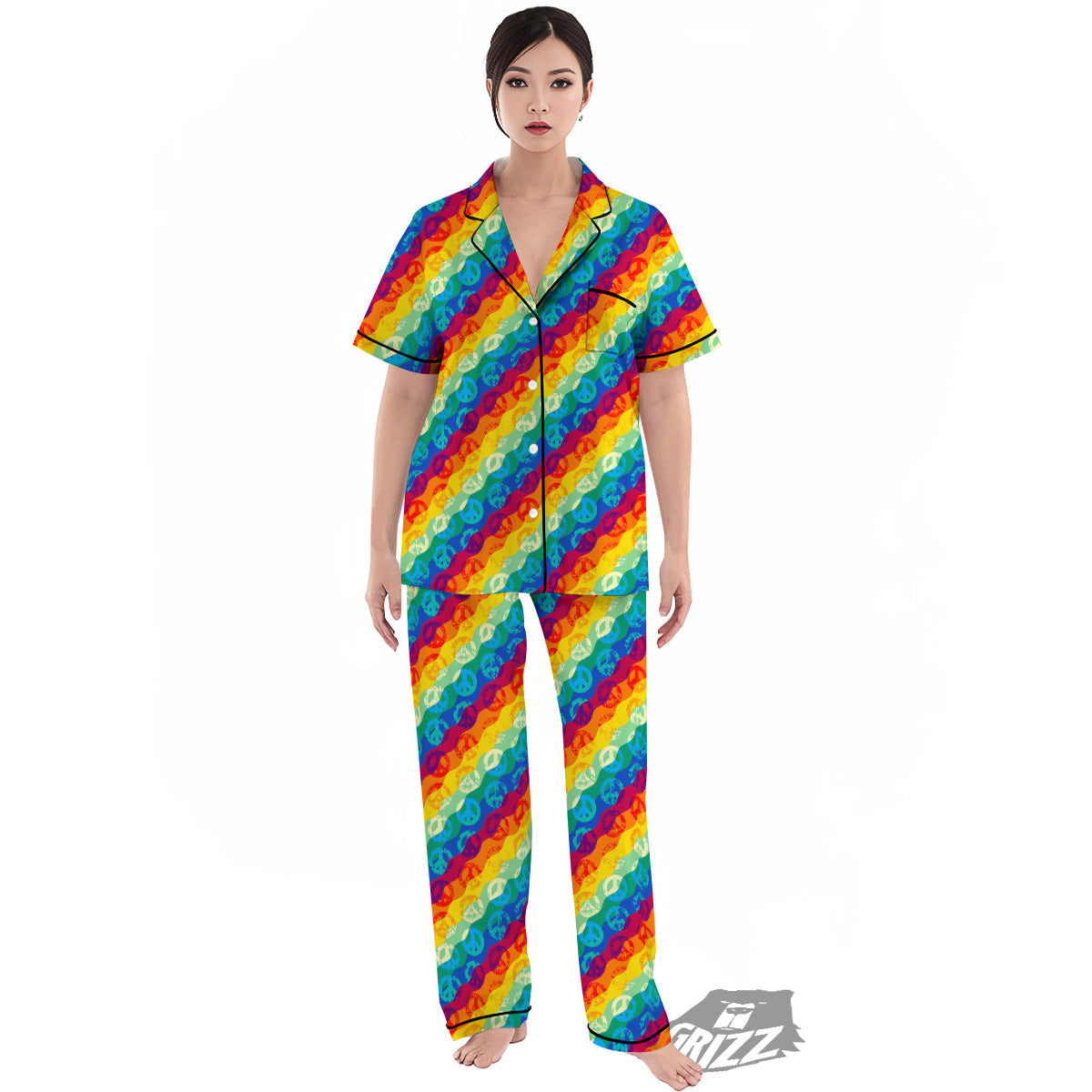 Looking for a unique Pajamas? Check out our Abstract Rainbow Peace Signs And LGBT Print Pattern Women's Pajamas Set at Grizzshopping. Our Pajamas are handcrafted to the highest quality standards that custom made for you