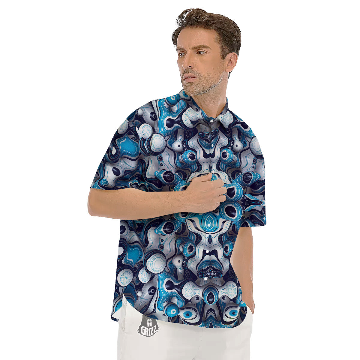 Abstract Wavy Bubbles Blue White Print Pattern Men's Short Sleeve Shirts
