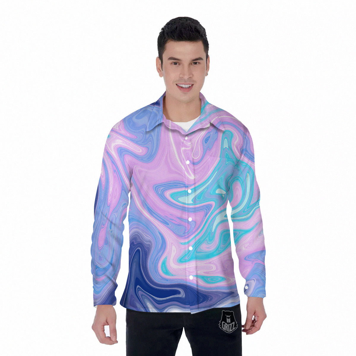 Acid Melt Blue And Pink Print Men's Long Sleeve Shirts