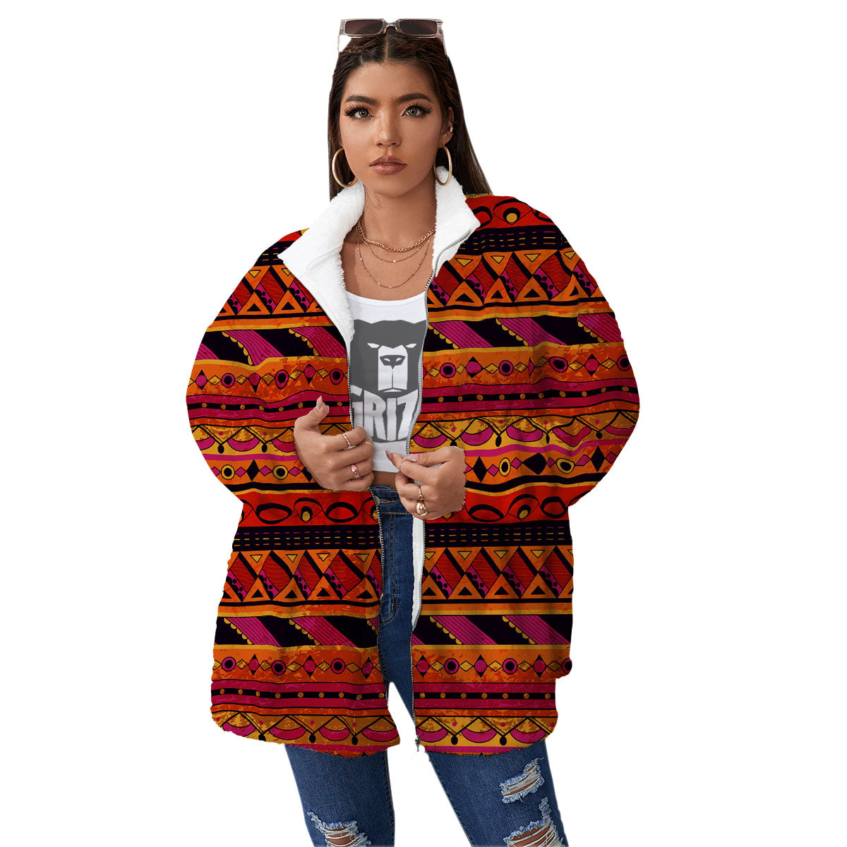 African Dashiki Black And Orange Print Women's Sherpa Jacket