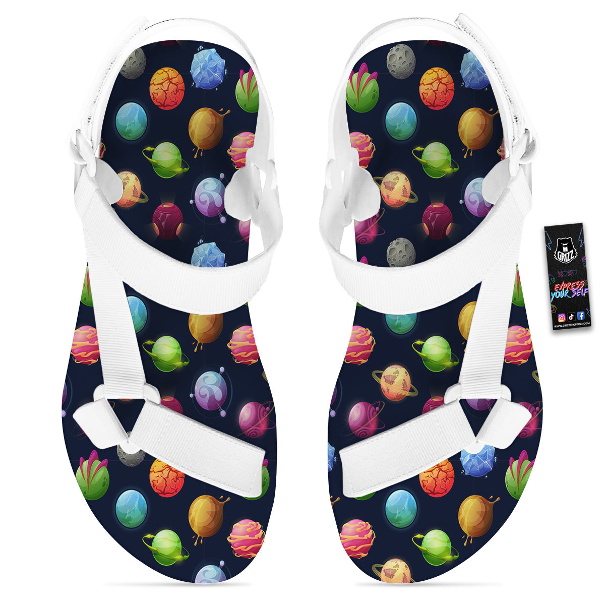 Alien Planets And Stars Print Pattern White Open Toe Sandals
