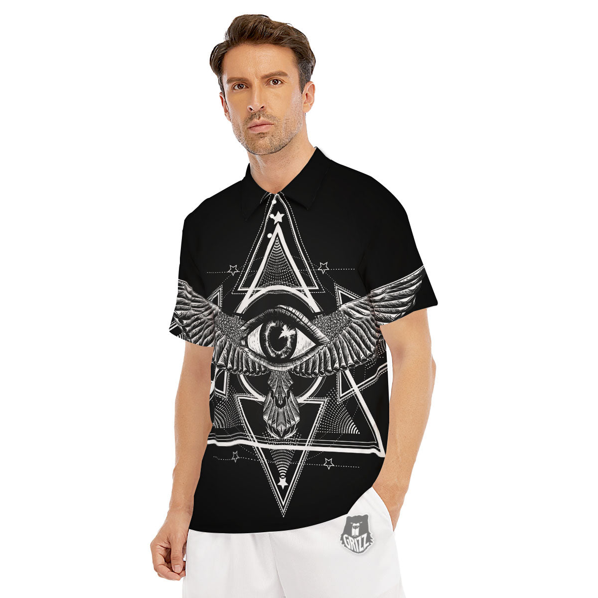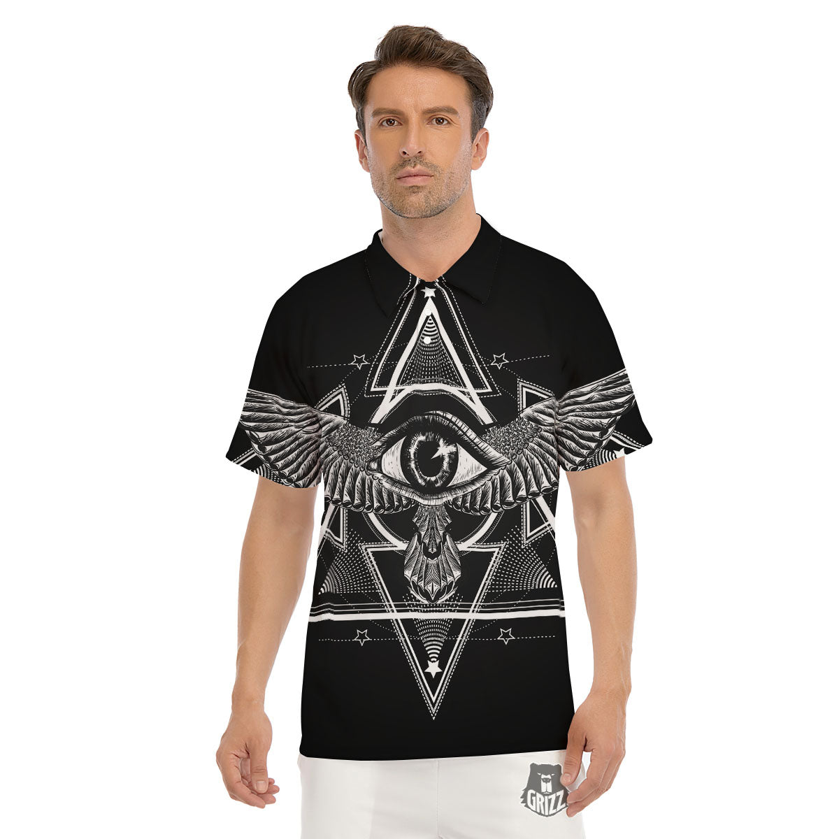 All Seeing Eye Black And Silver Print Men's Golf Shirts