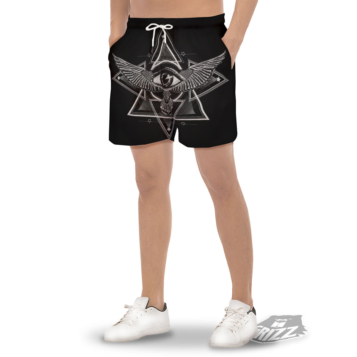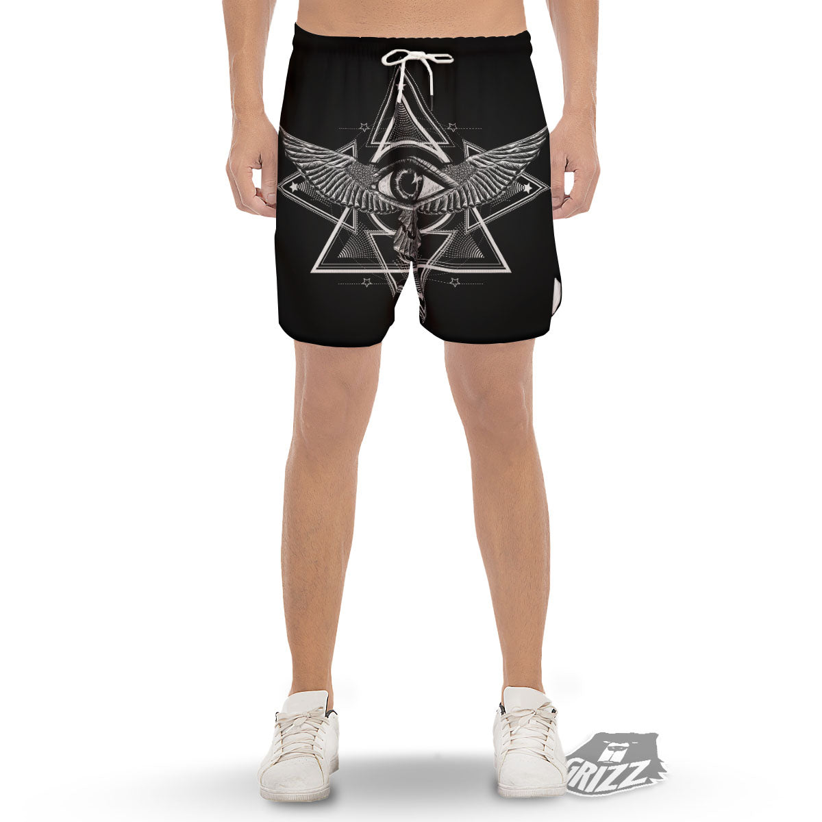 All Seeing Eye Black And Silver Print Men's Gym Shorts