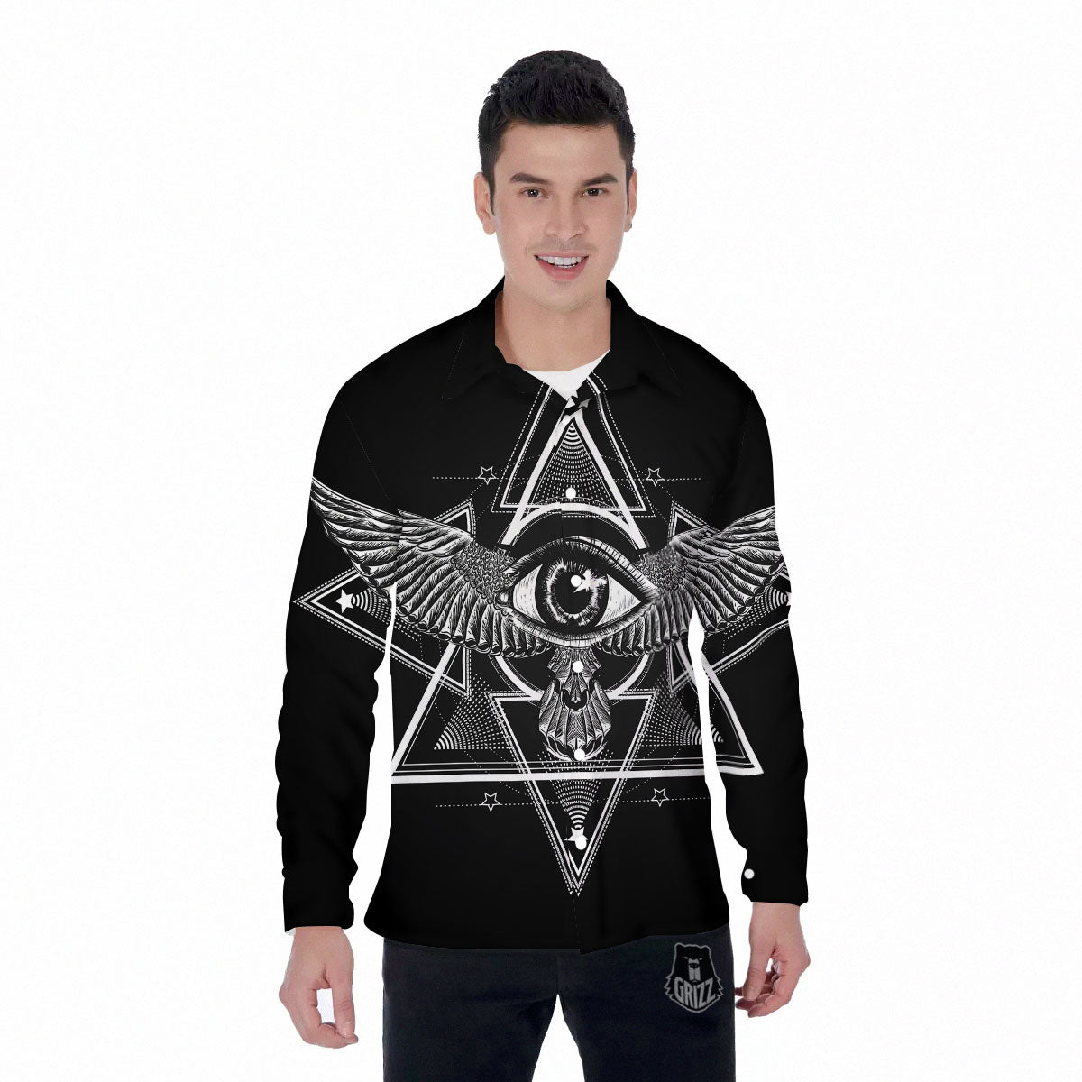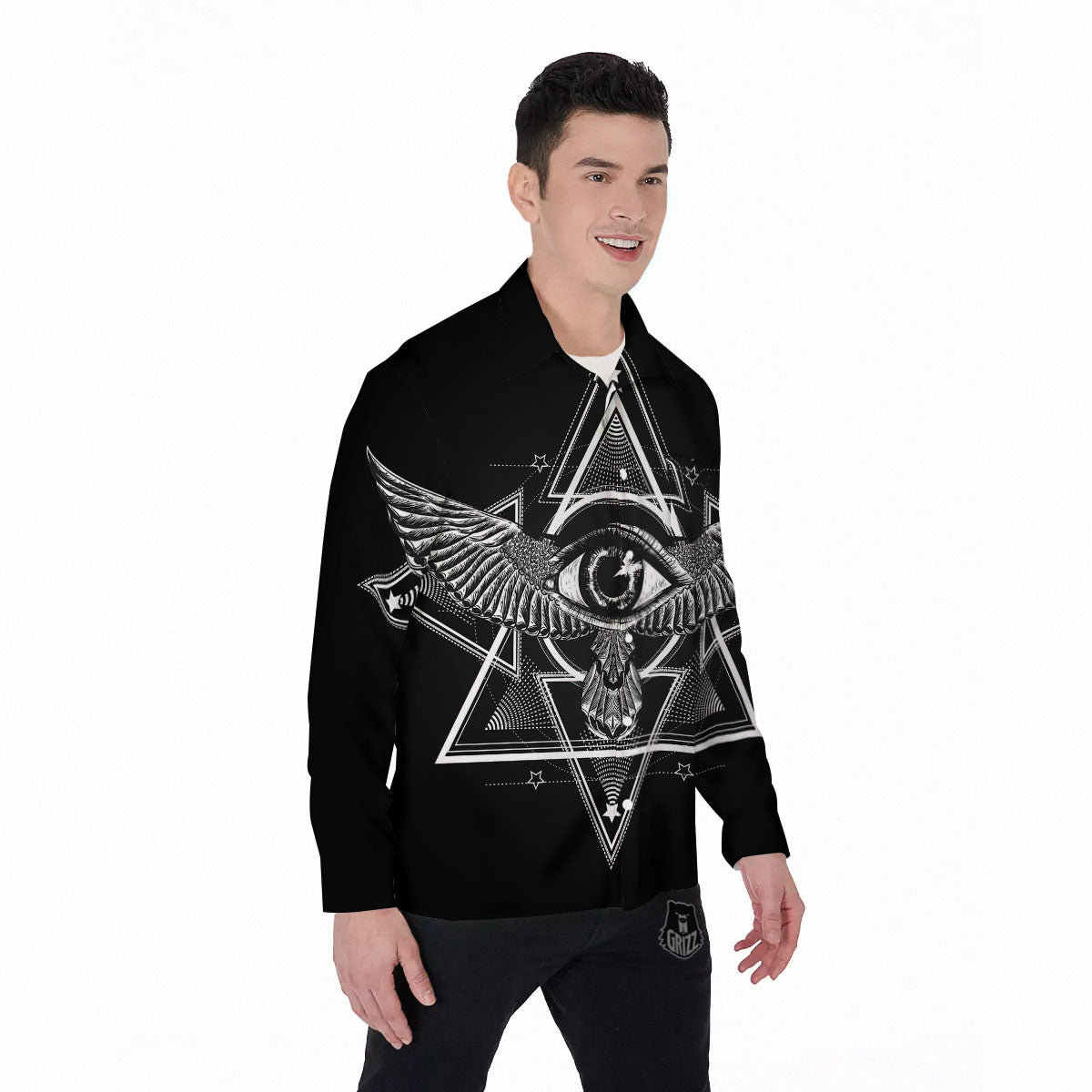 All Seeing Eye Black And Silver Print Men's Long Sleeve Shirts