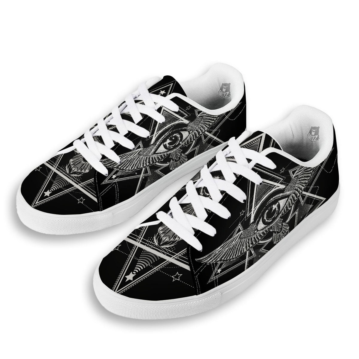Looking for a unique low top shoes? Check out our All Seeing Eye Black And Silver Print White Low Top Sneakers at Grizzshopping. Our low top sneakers are handcrafted to the highest quality standards that custom made for you