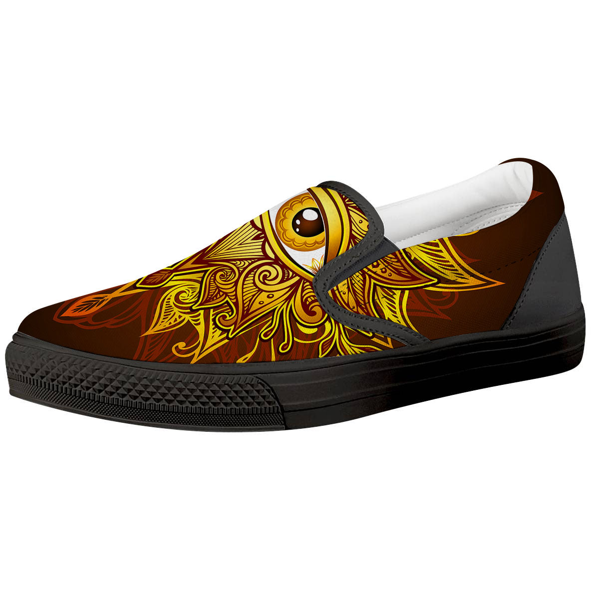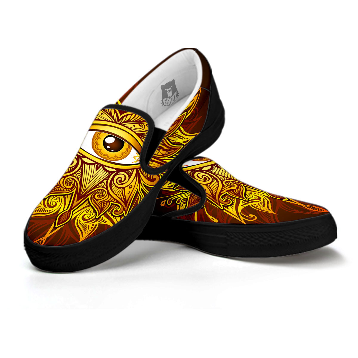 Looking for a unique Slip On Sneakers? Check out our All Seeing Eye Gold Print Black Slip On Shoes at Grizzshopping. Our Slip On Sneakers are handcrafted to the highest quality standards that custom made for you