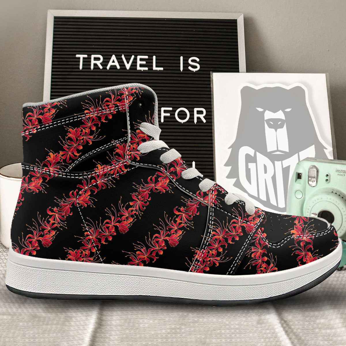 Amaryllis Red Japanese Print Pattern High Top Sneakers