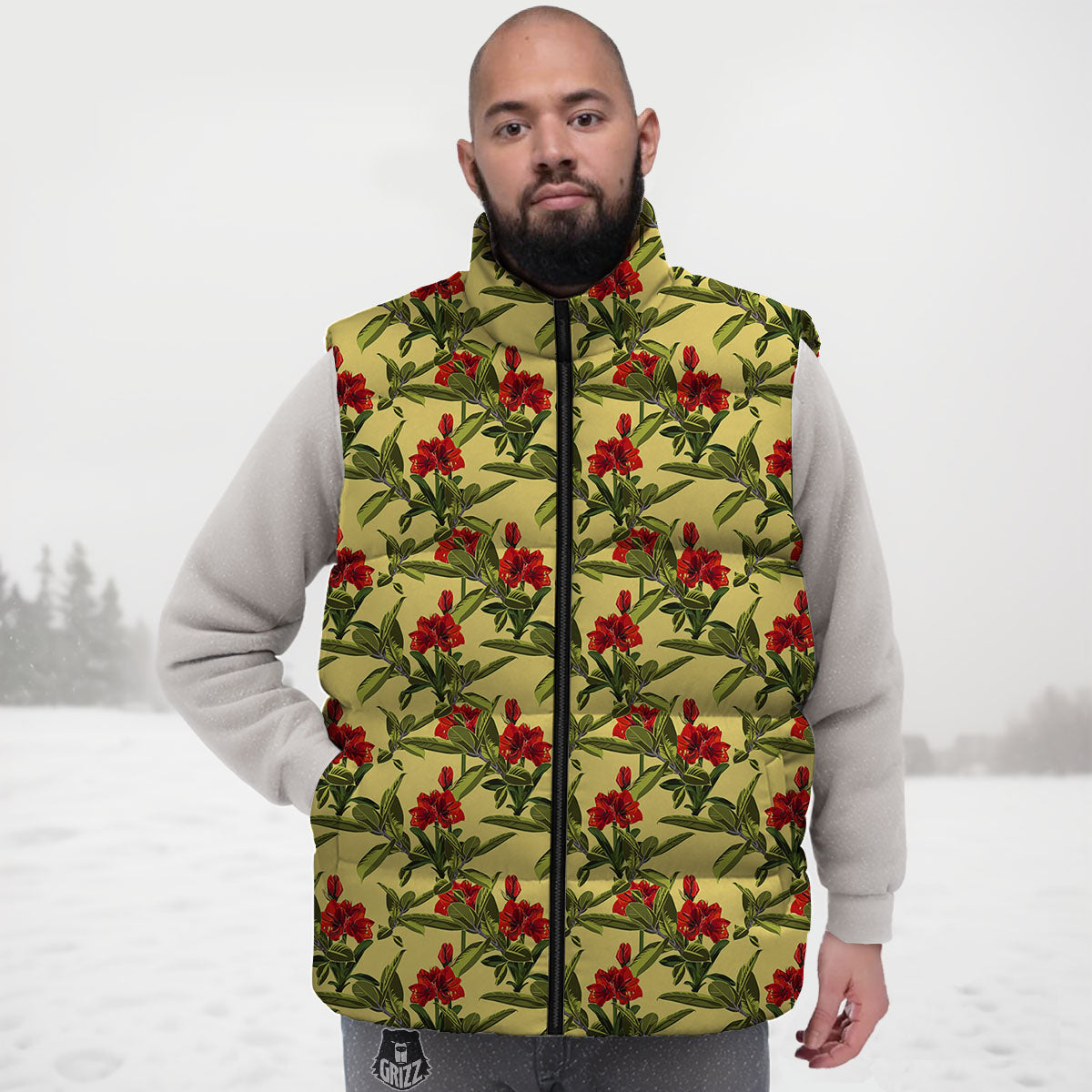 Looking for a unique Down Vest? Check out our Amaryllis Red Yellow Print Pattern Down Vest at Grizzshopping. Our down vest are handcrafted to the highest quality standards that custom made for you