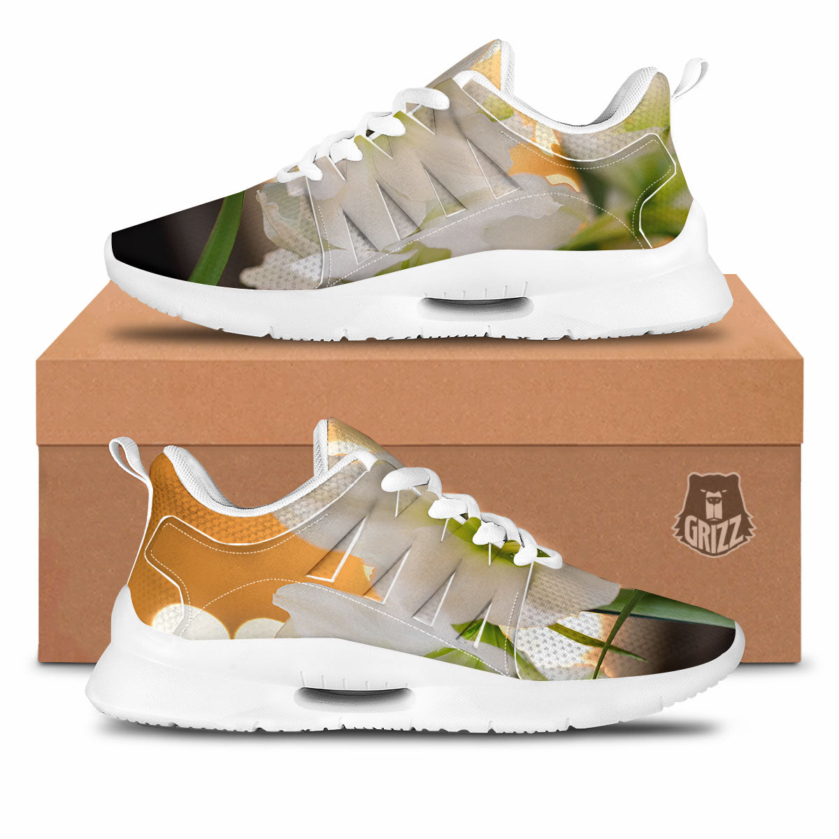 Looking for unique tennis shoes? Check out our Amaryllis White Print Tennis Shoes at Grizzshopping. Our tennis shoes are handcrafted to the highest quality standards that custom made for you