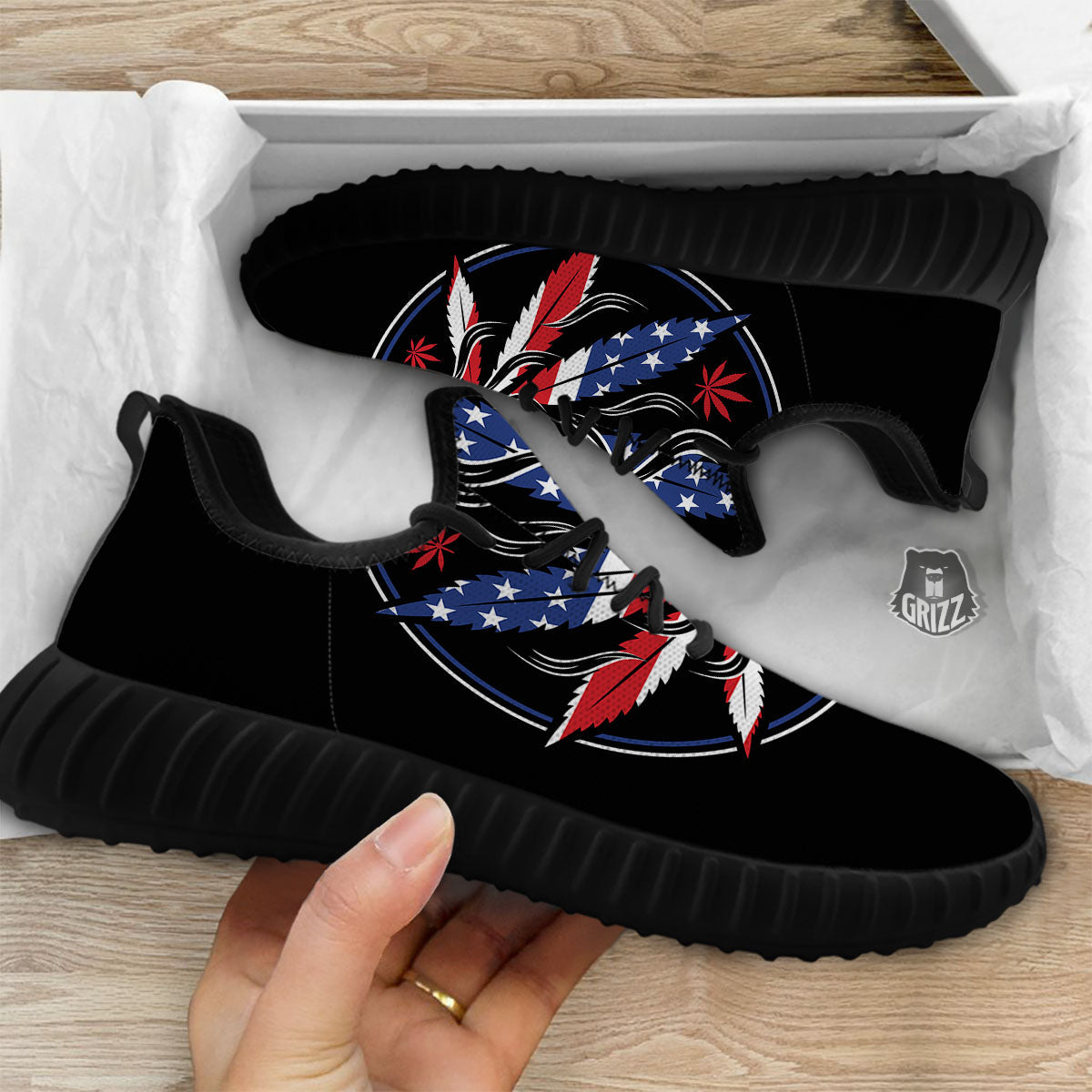 Looking for unique walking shoes? Check out our American Cannabis Leaf Flag Print Black Walking Shoes at Grizzshopping. Our walking shoes are handcrafted to the highest quality standards and custom-made for you