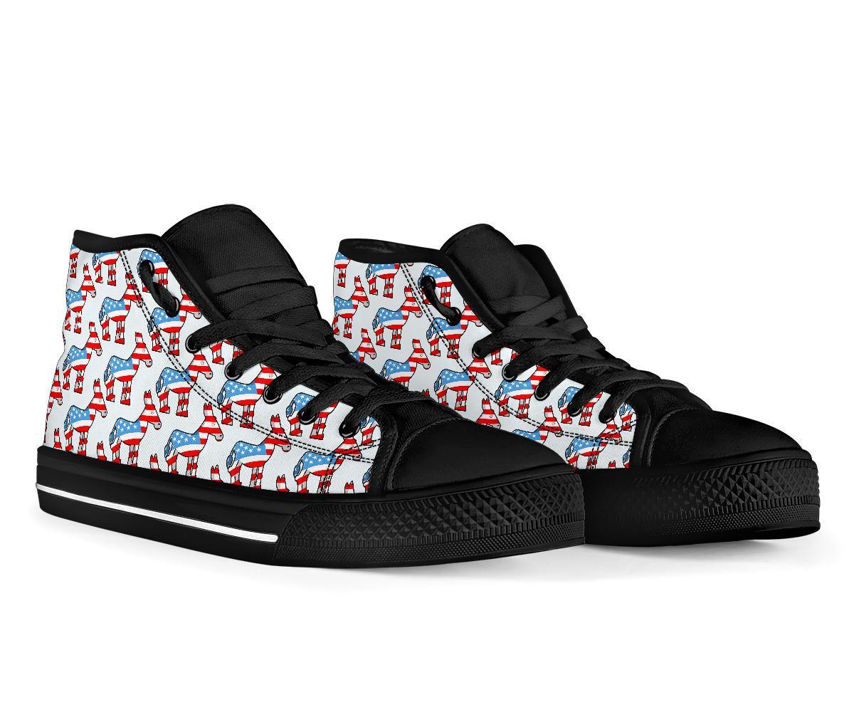 American Flag Donkey Pattern Print Men Women's High Top Shoes
