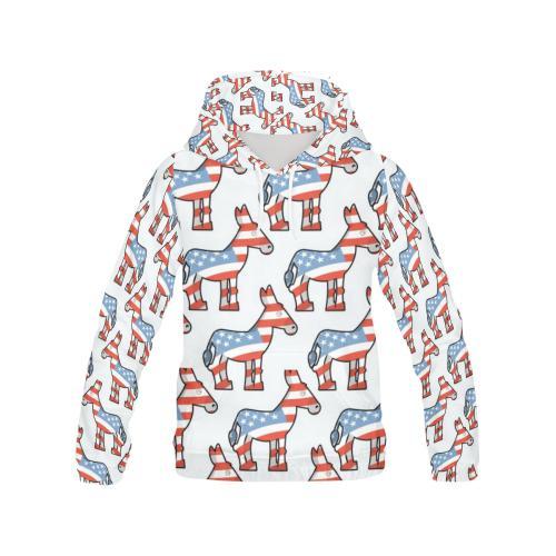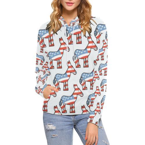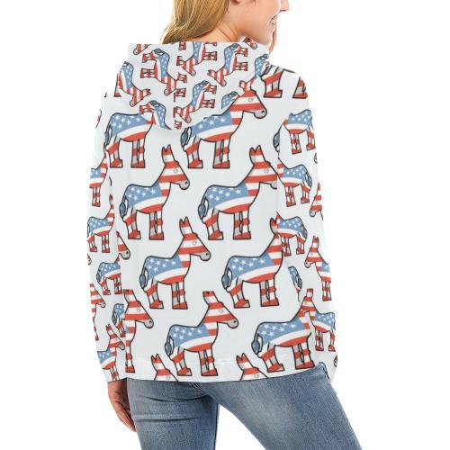 American Flag Donkey Pattern Print Women Pullover Hoodie