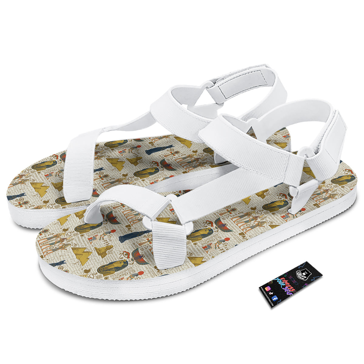 Ancient Egypt Text Print Pattern White Open Toe Sandals