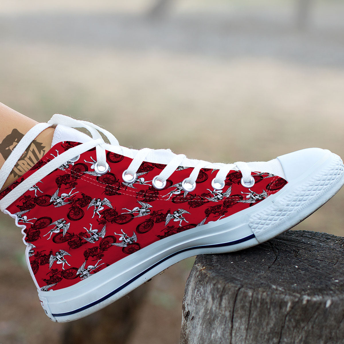 Angel And Motorcycle Print Pattern White High Top Shoes