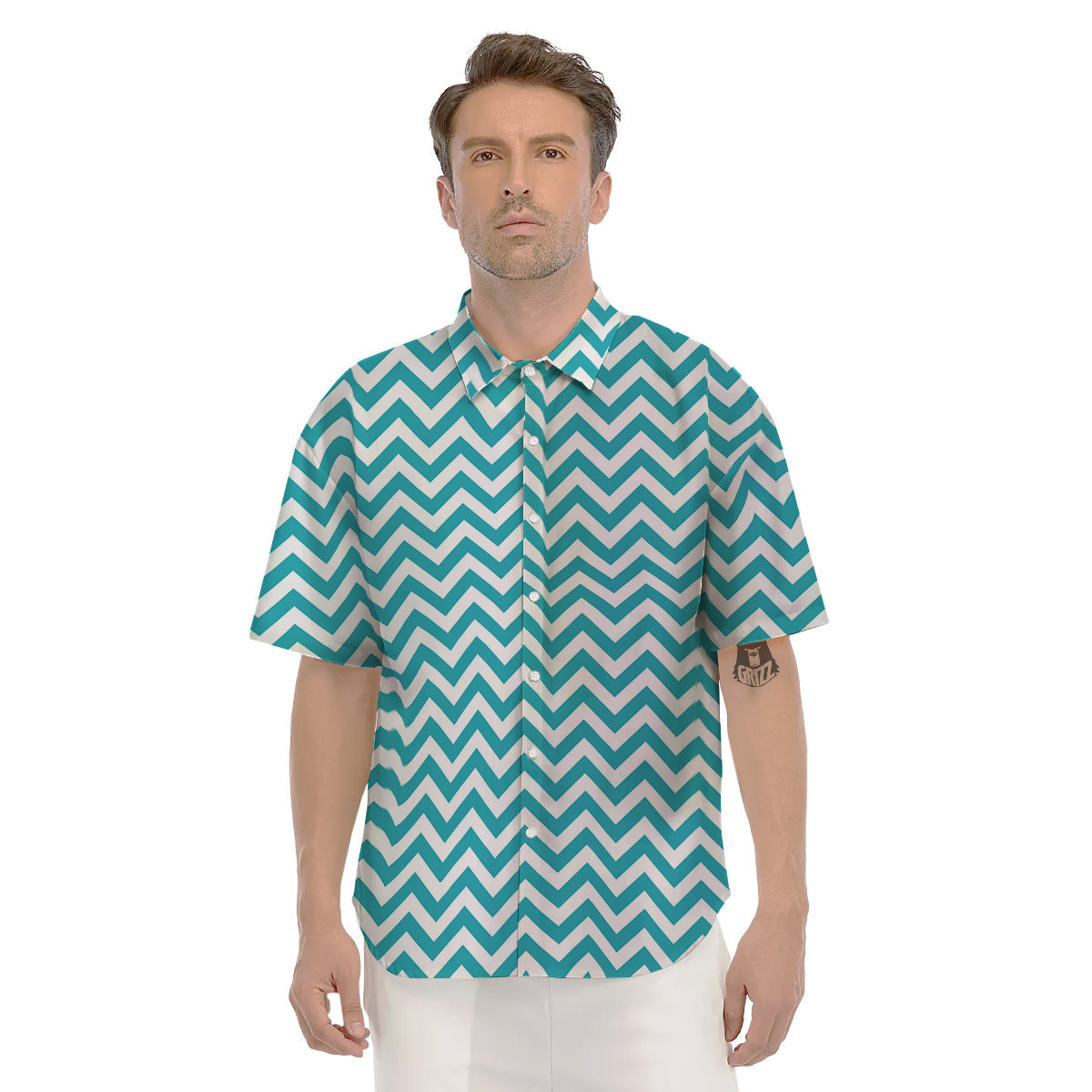 Aqua Zigzag Print Pattern Men's Short Sleeve Shirts