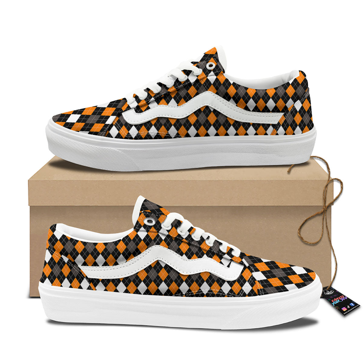 Looking for unique Skate Shoes shoes? Check out our Argyle Orange Black Grey And White Print Skate Shoes at Grizzshopping. Our Skaste Shoes are handcrafted to the highest quality standards that custom made for you