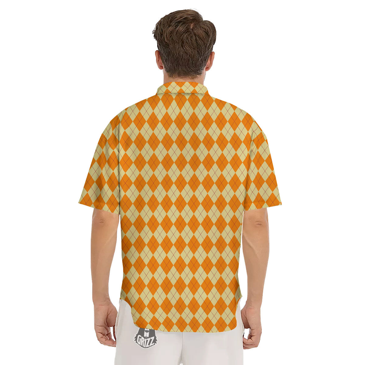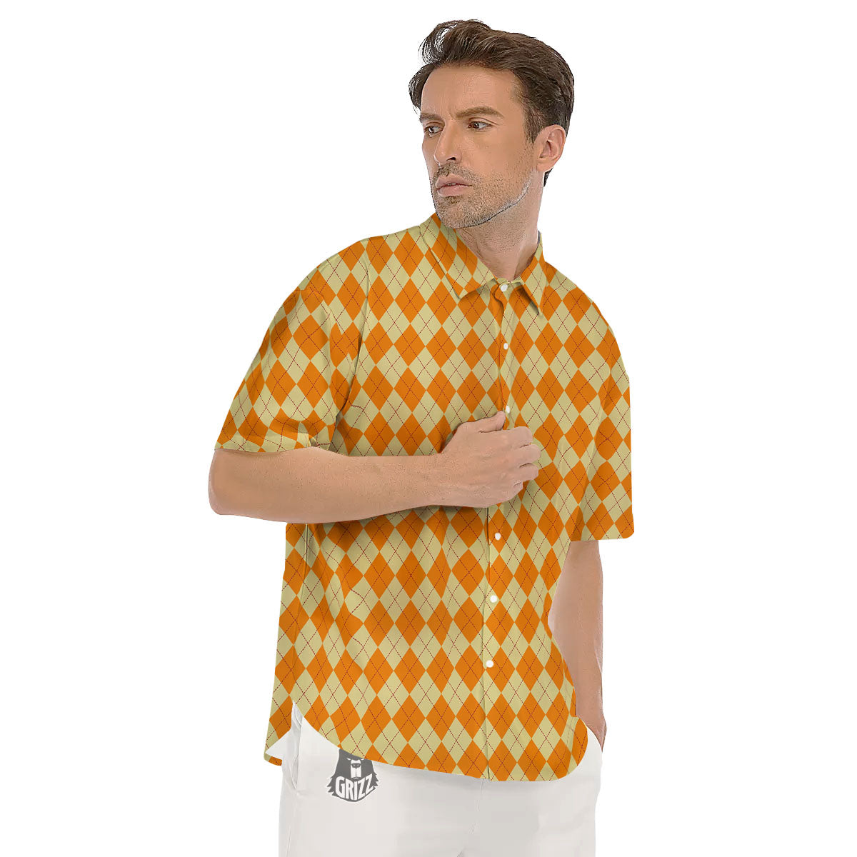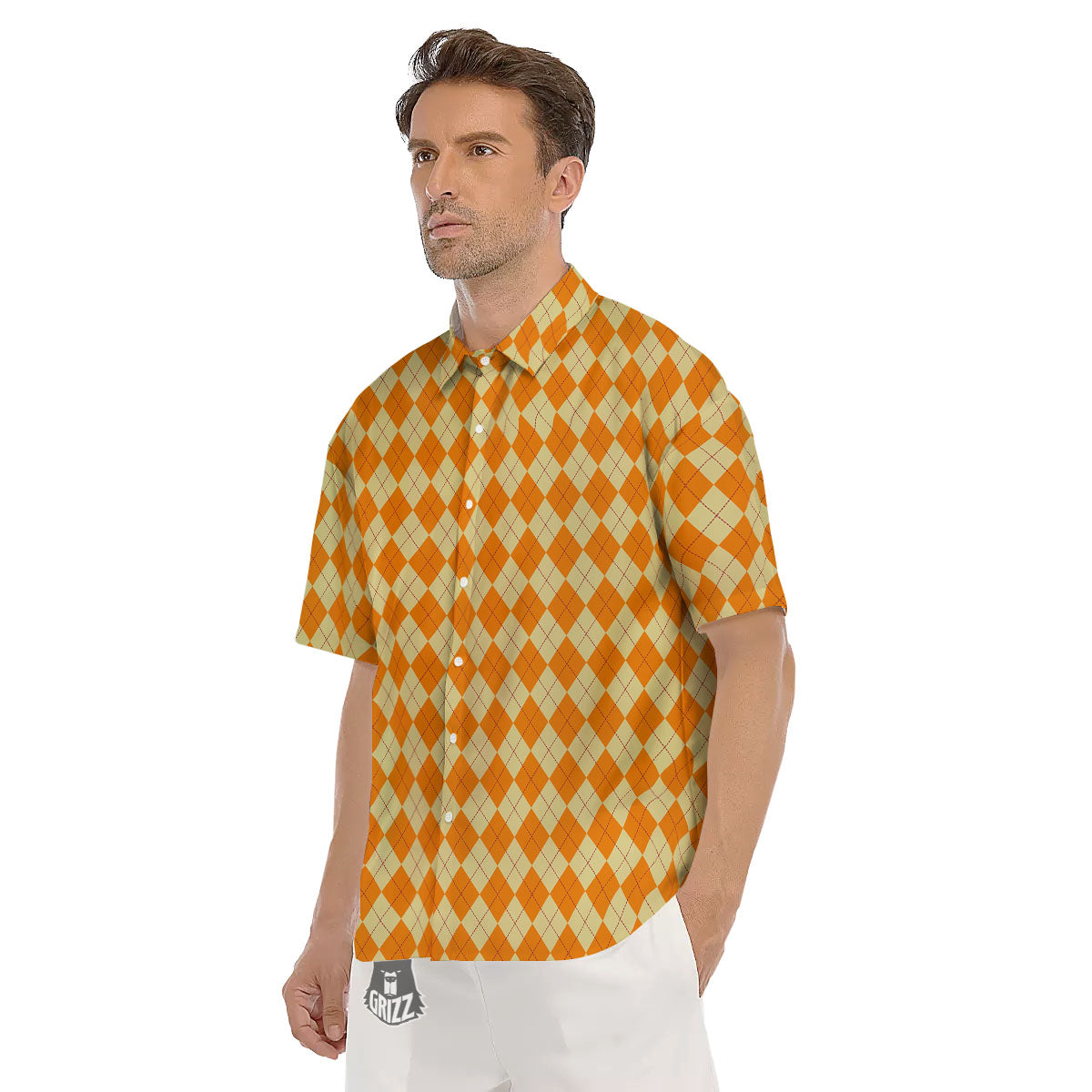Argyle Orange Print Pattern Men's Short Sleeve Shirts