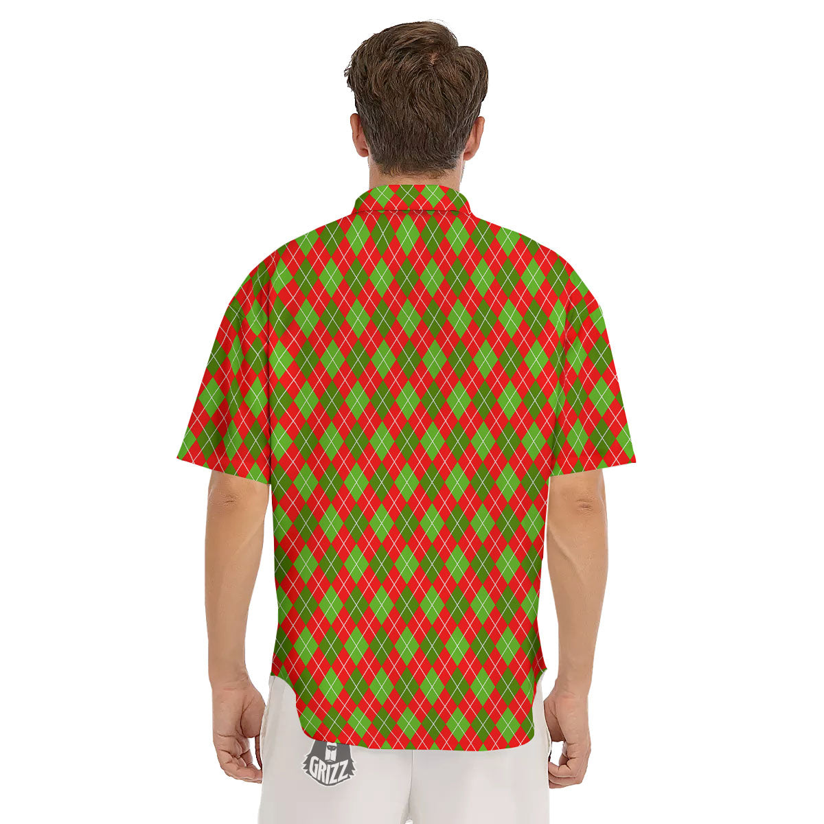 Argyle Red And Green Print Pattern Men's Short Sleeve Shirts