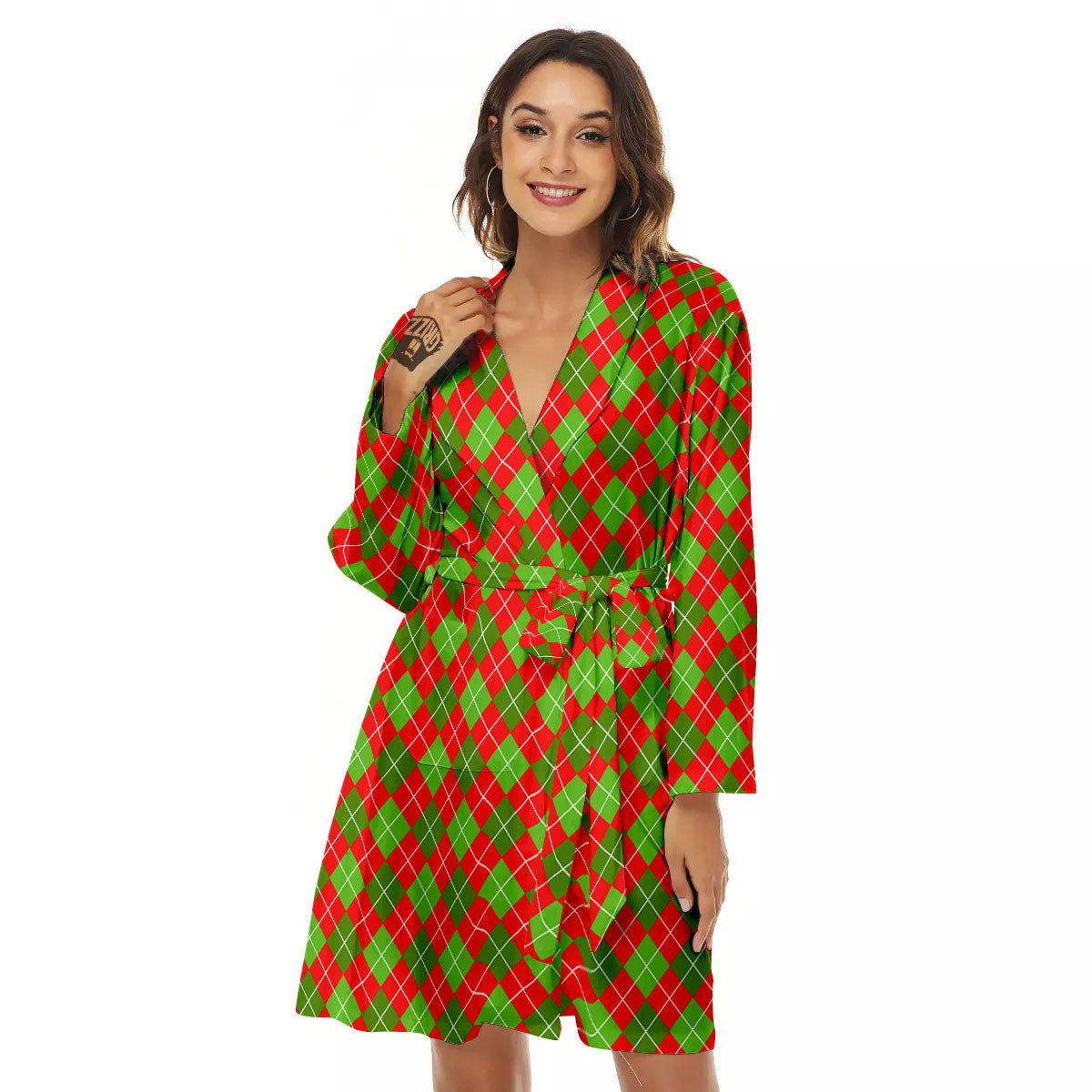 Looking for a unique robe? Check out our Argyle Red And Green Print Pattern Women's Robe at Grizzshopping. Our robe are handcrafted to the highest quality standards that custom made for you