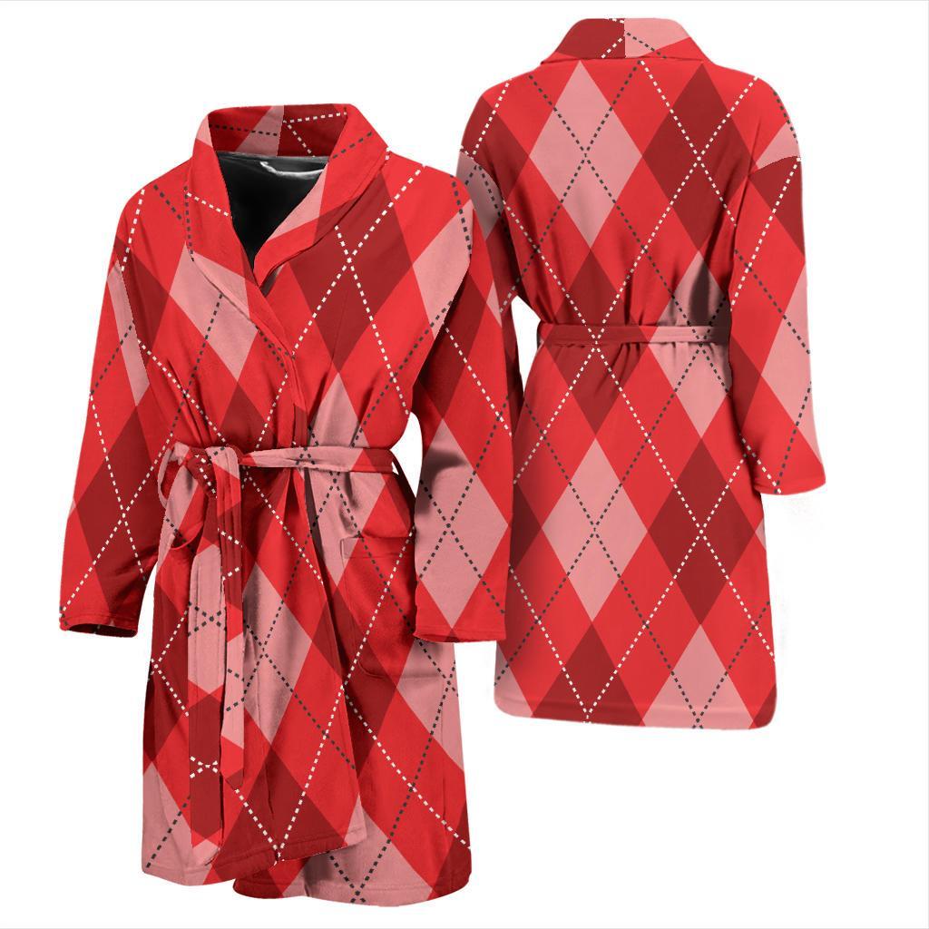 Argyle Red Pattern Print Men Long Robe
