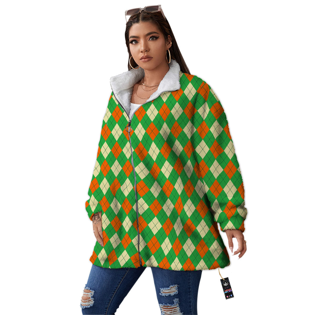 Argyle Saint Patrick's Day Print Pattern Women's Sherpa Jacket