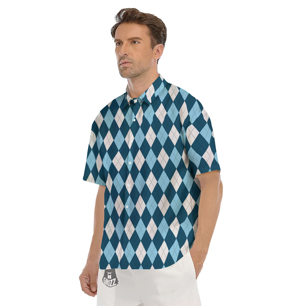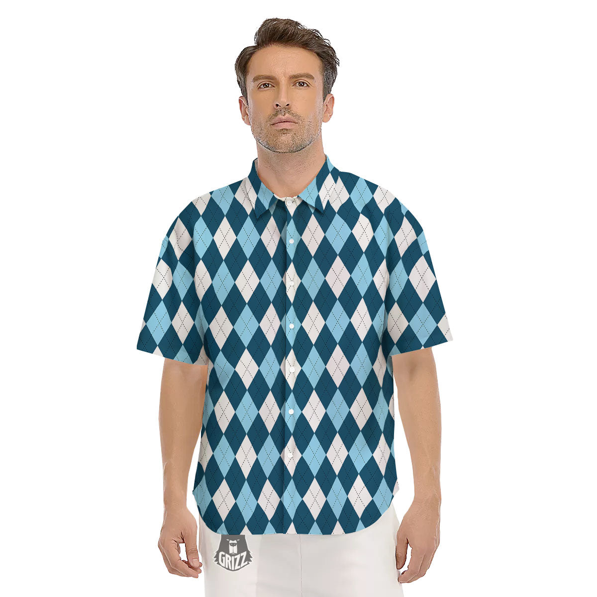 Argyle Soft Blue Print Pattern Men's Short Sleeve Shirts