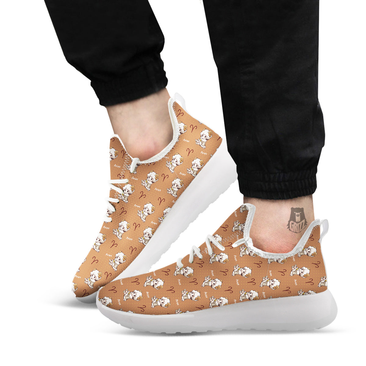 Aries Cute Cartoon Print Pattern White Athletic Shoes