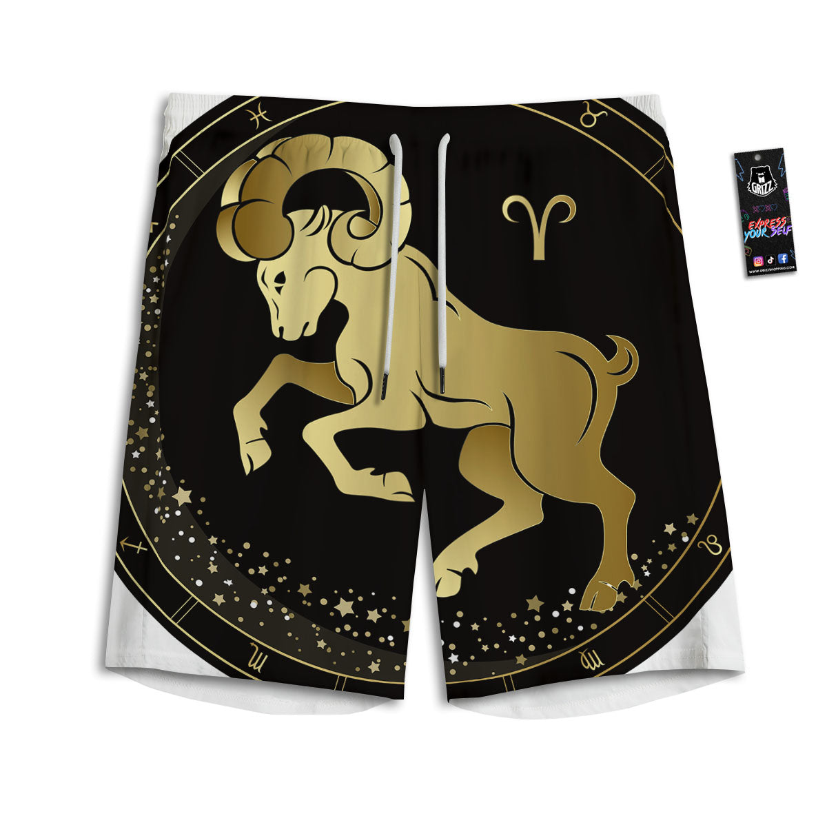 Aries Sign Black And Gold Print Men's Athletic Shorts
