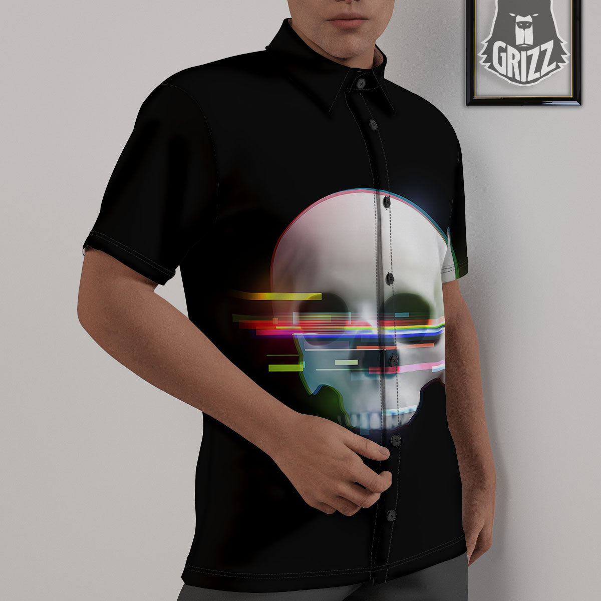 Astronaut Skull Digital Glitch Print Untucked Shirts