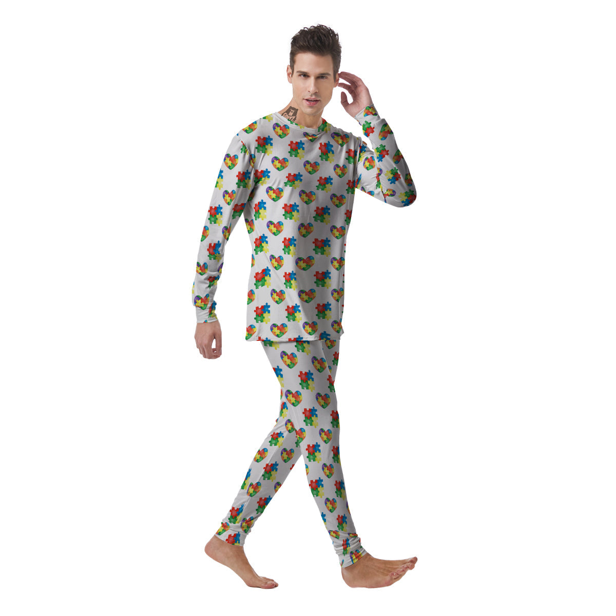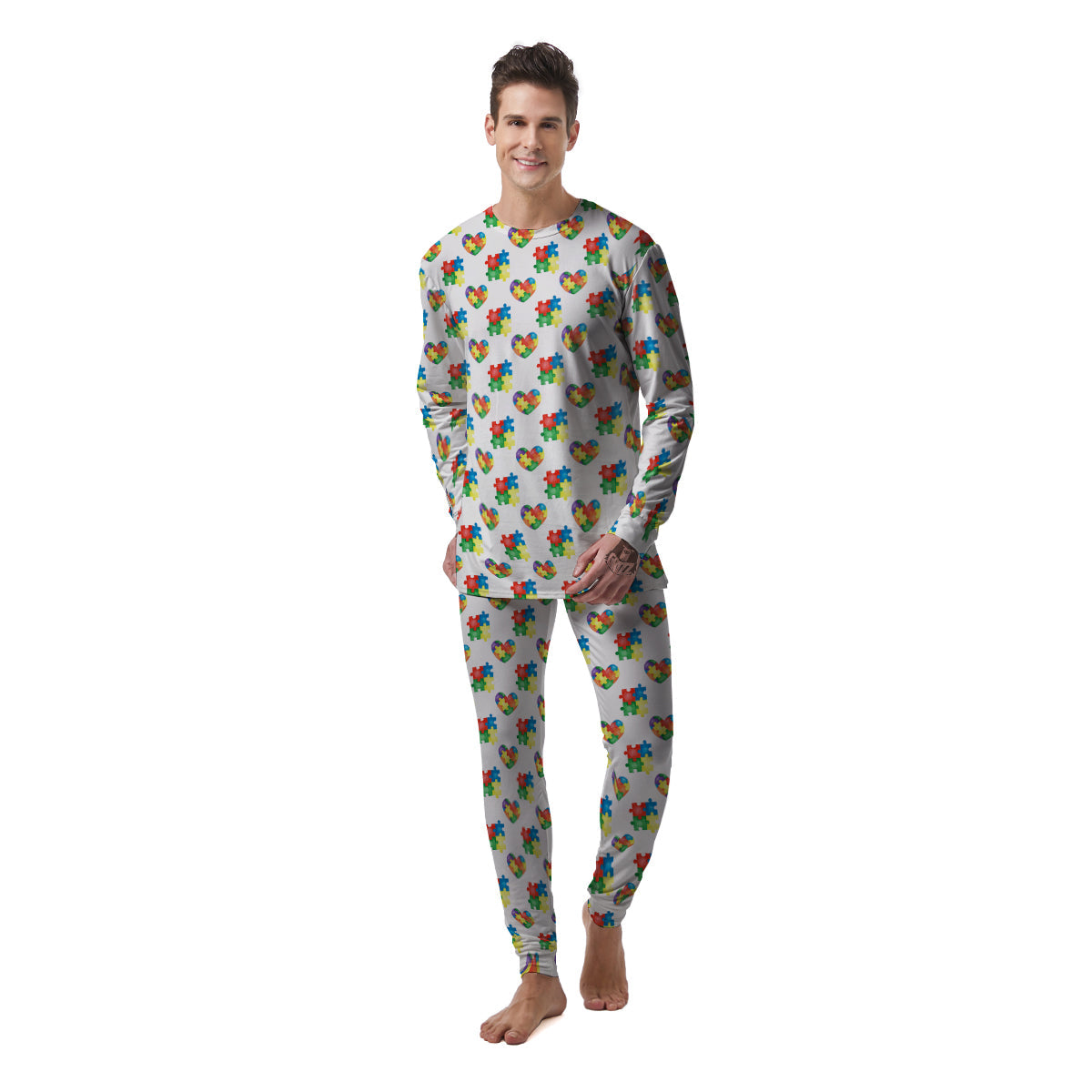 Autism Awareness Heart Print Pattern Men's Pajamas