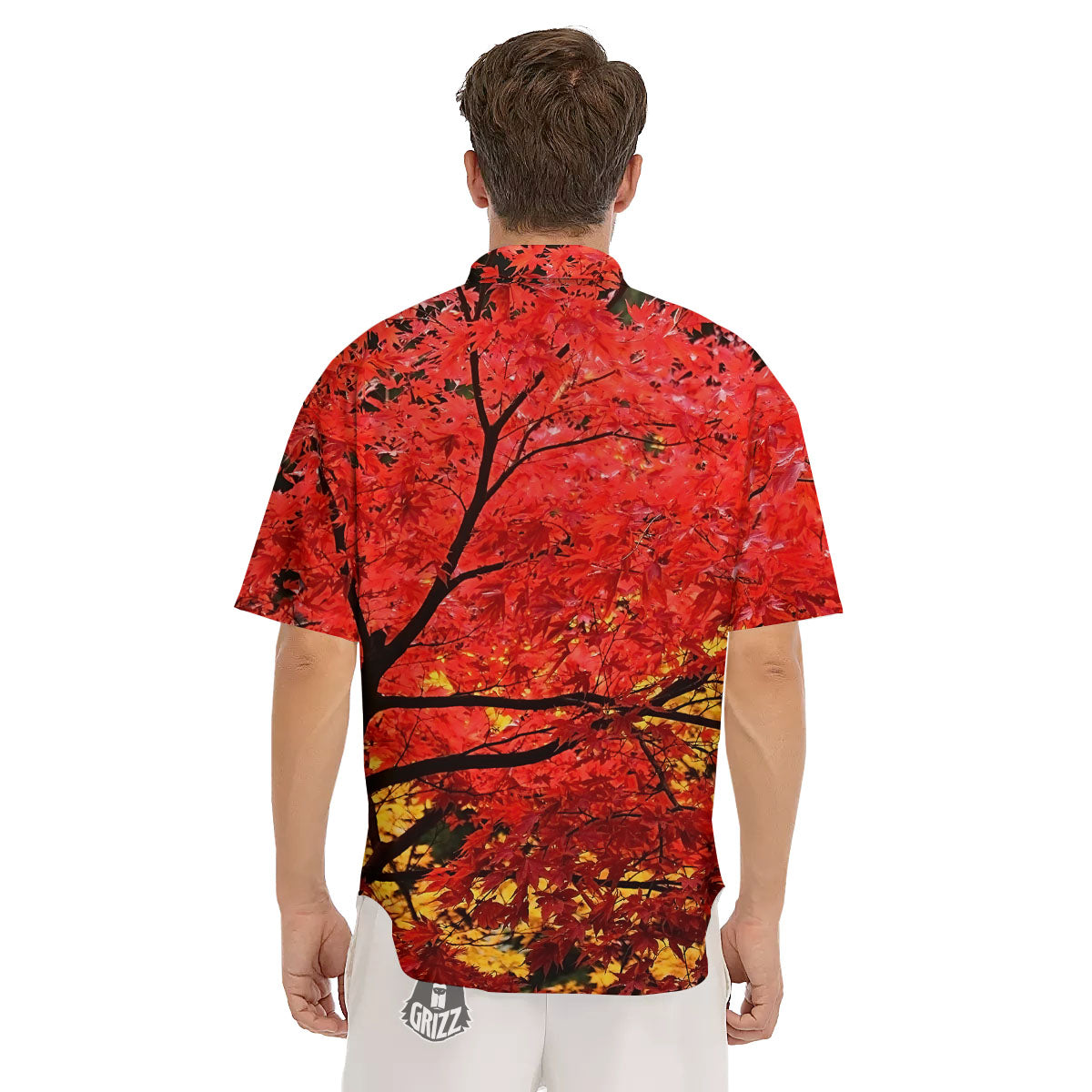 Autumn Trees Red Print Men's Short Sleeve Shirts