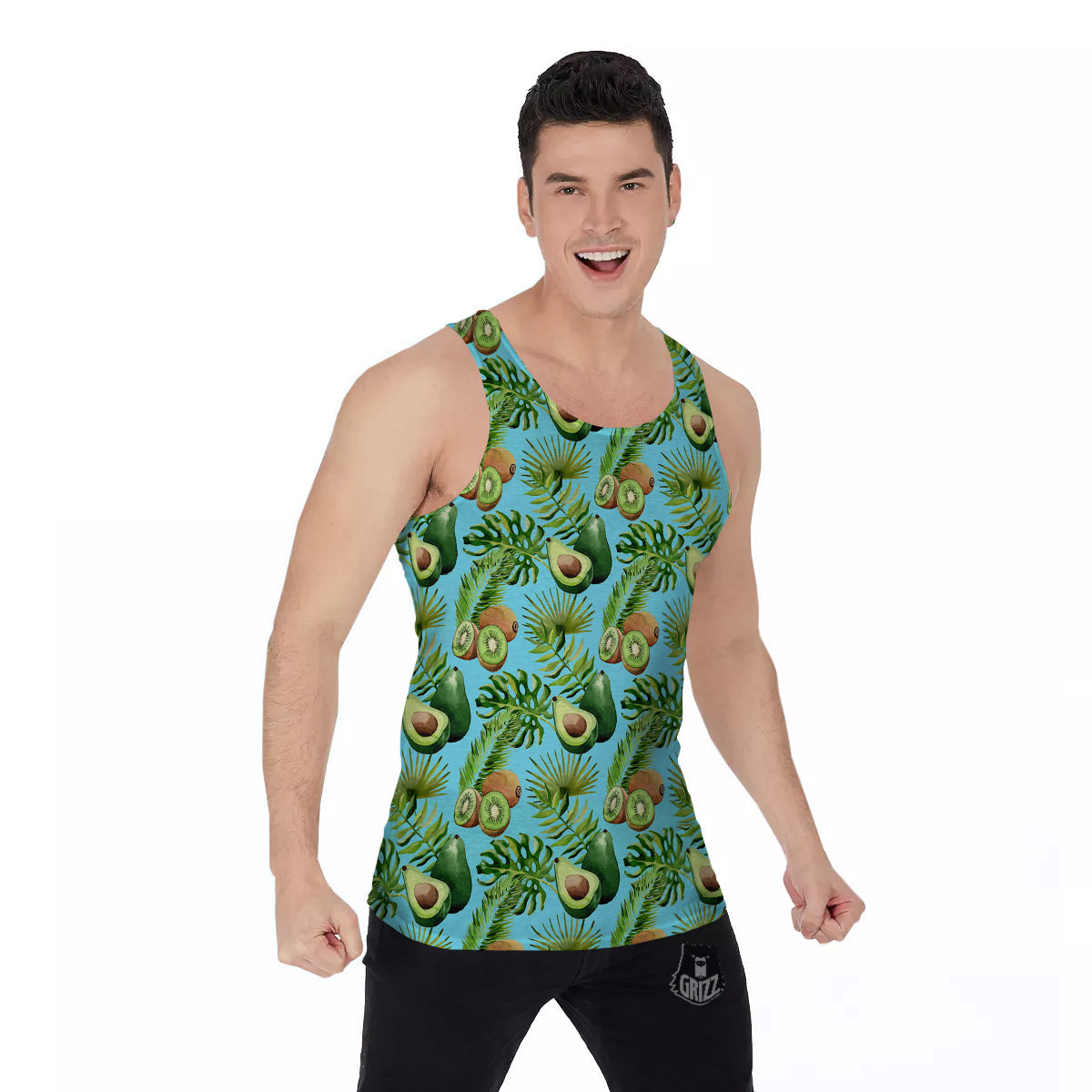Avocado And Watercolor Kiwi Print Pattern Men's Tank Top