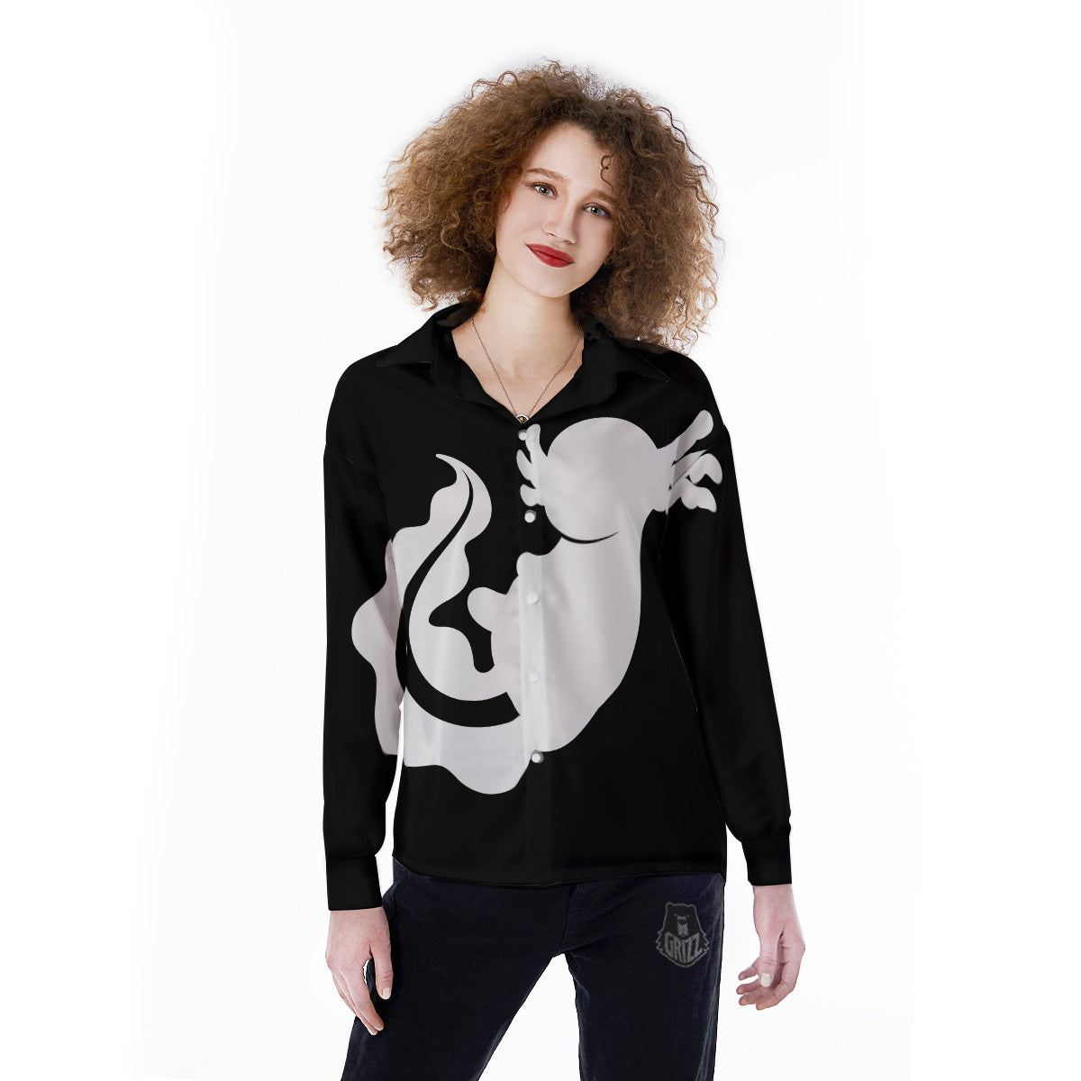 Axolotl White And Black Print Women's Long Sleeve Shirts