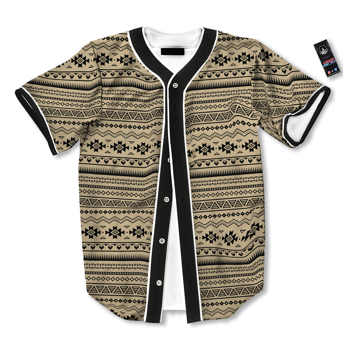 Aztec Beige And Black Print Pattern Baseball Jersey